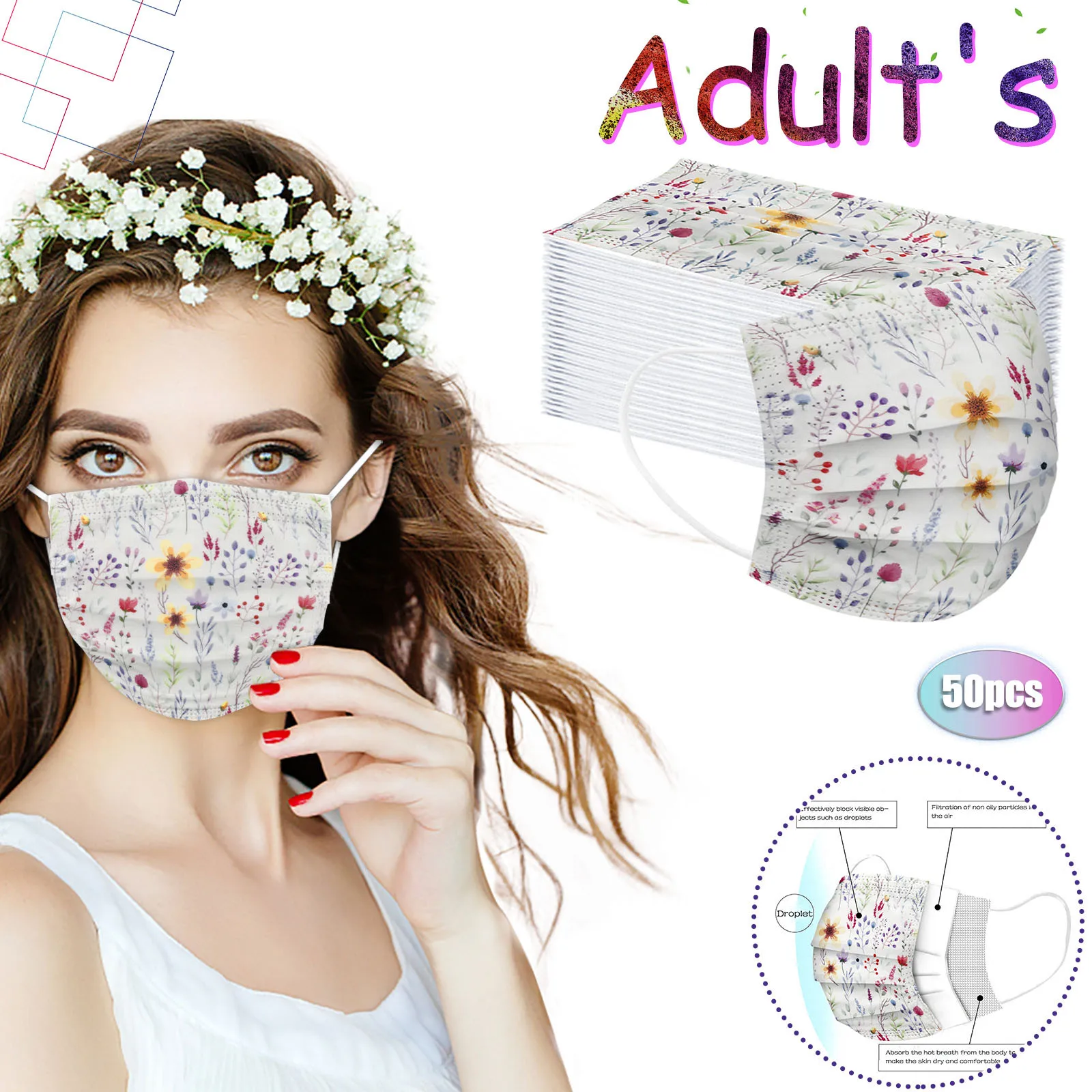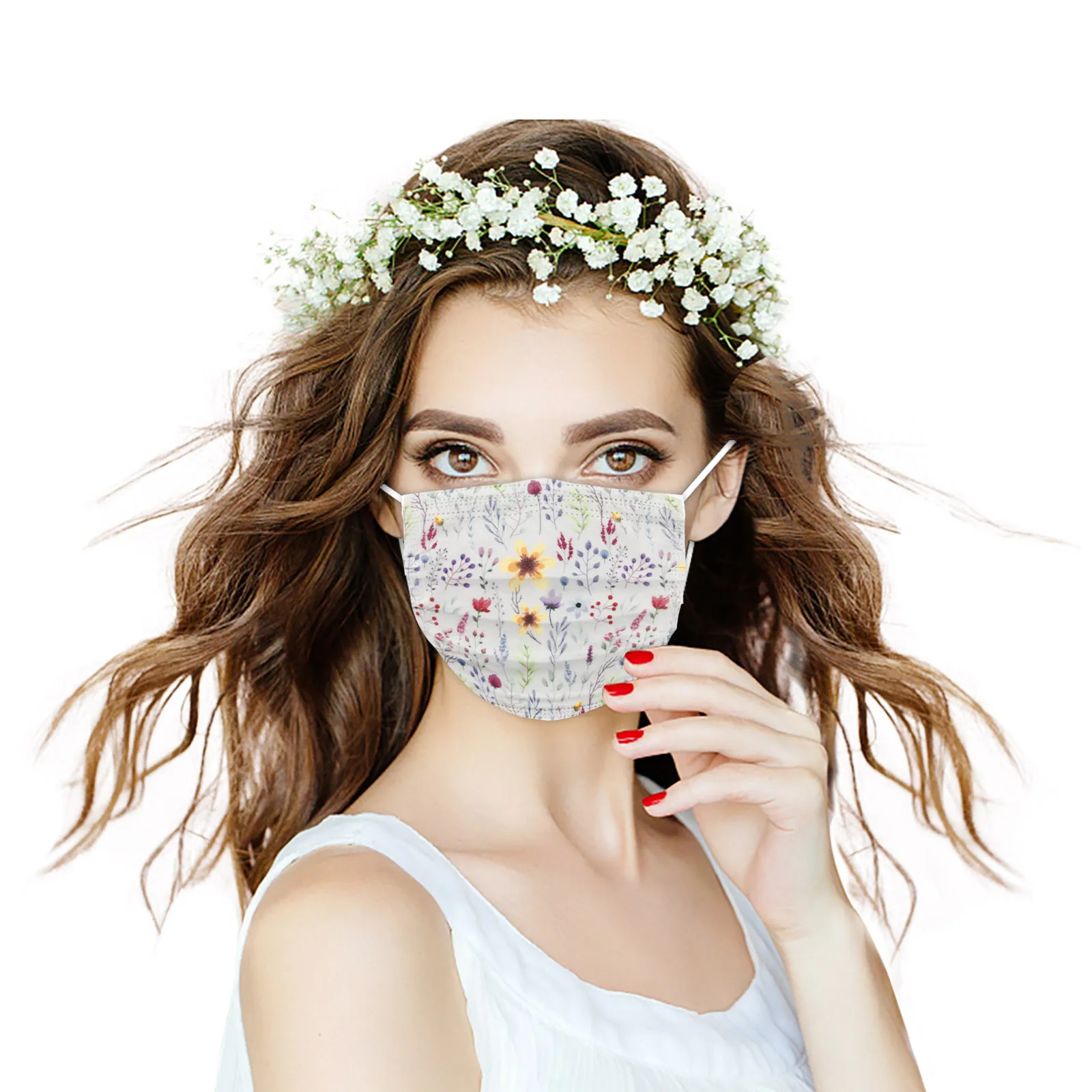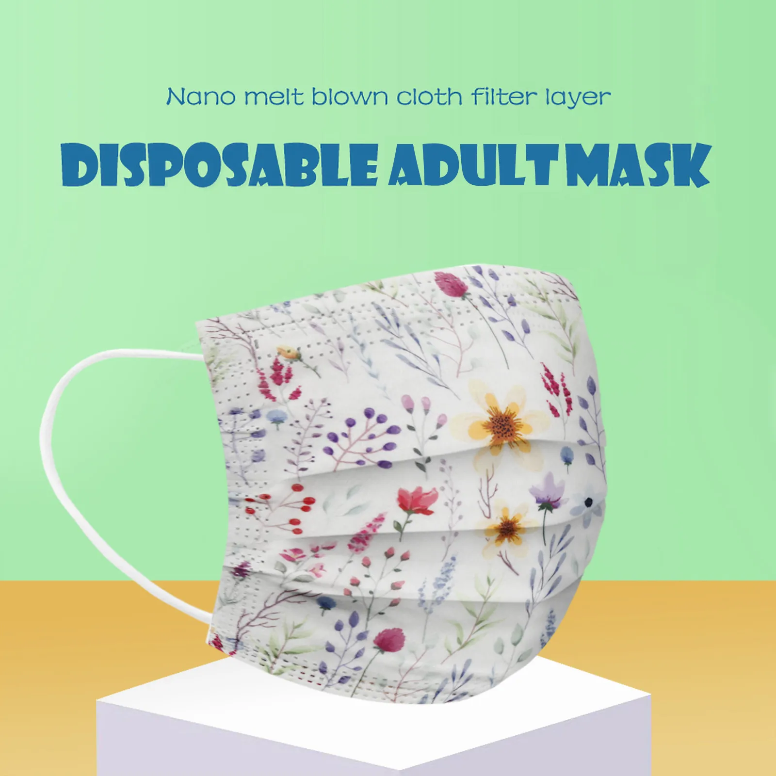 Маска одноразовая для взрослых с цветочным принтом, 1020304050100 шт.
