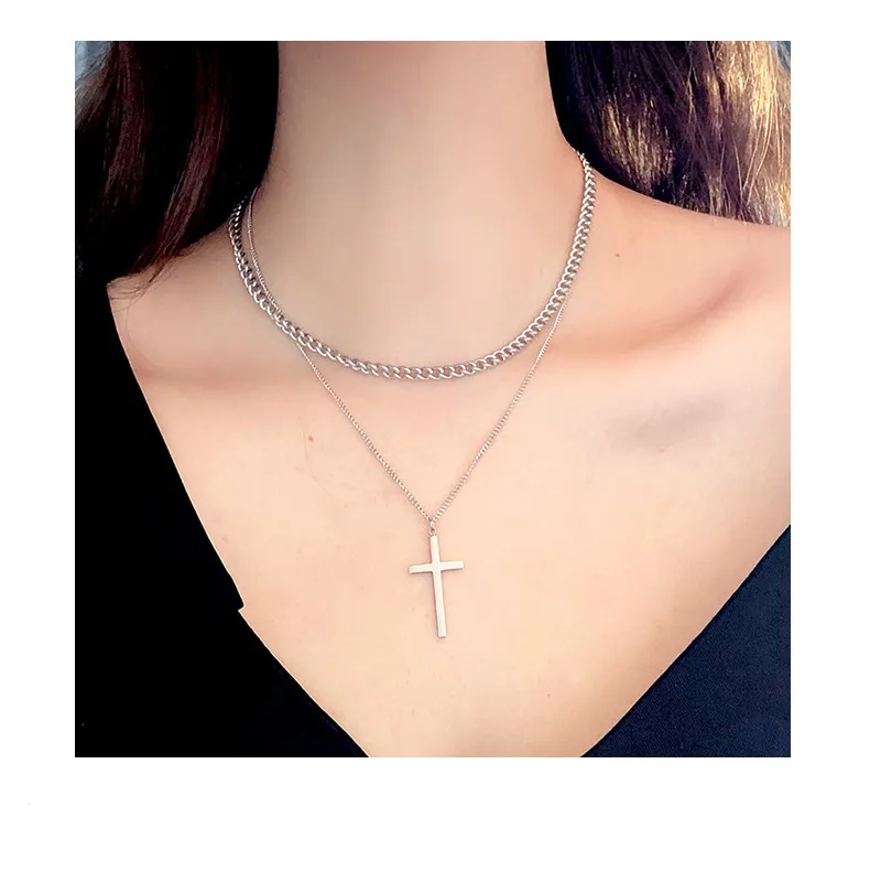 Цепочка Из Нержавеющей Стали 316L в стиле панк-рок, ожерелье с кулоном в готическом стиле, многослойное колье с распятием, ювелирные украшения для женщин