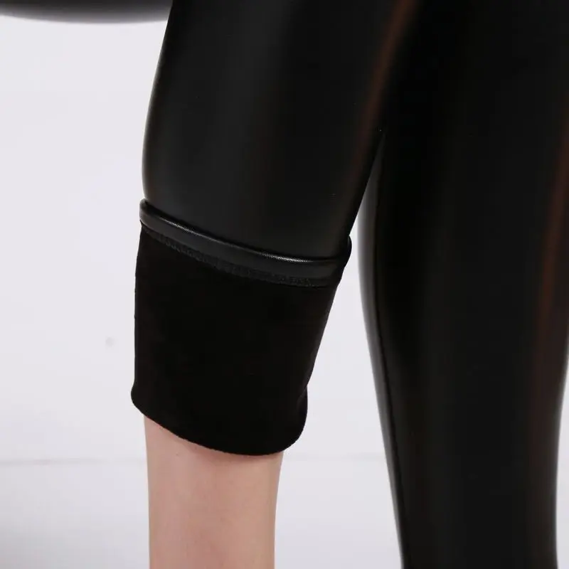 Для женщин; Большие размеры зимние кожаные леггинсы брюки с высокой талией теплые бархат; Штаны для маленьких детей детские брюки женские плотные эластичные Pantalon Femme S-5XL
