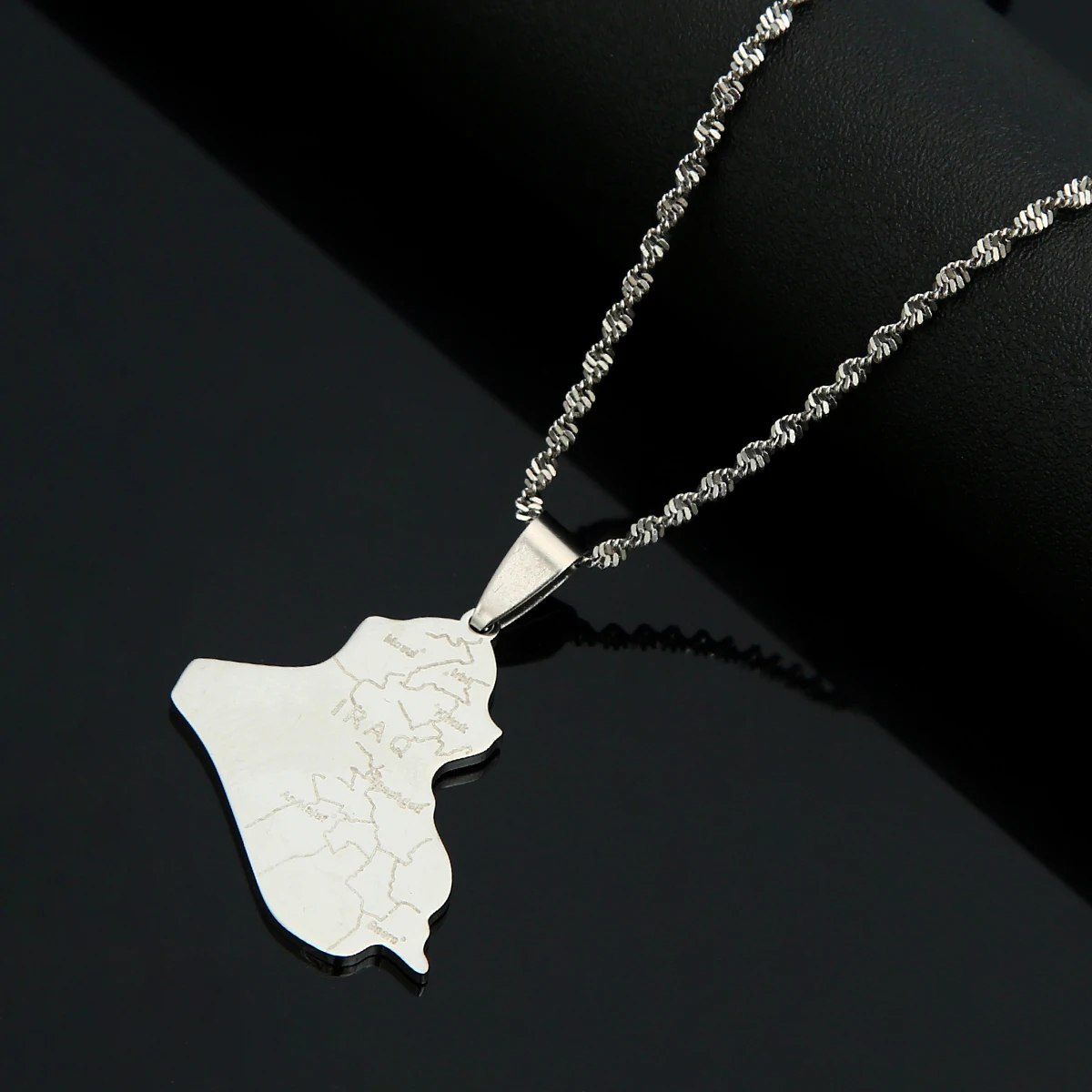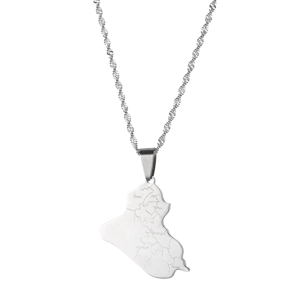 JewelryStainless Steel Iraq Map National Map of Iraq Pendant Necklaces