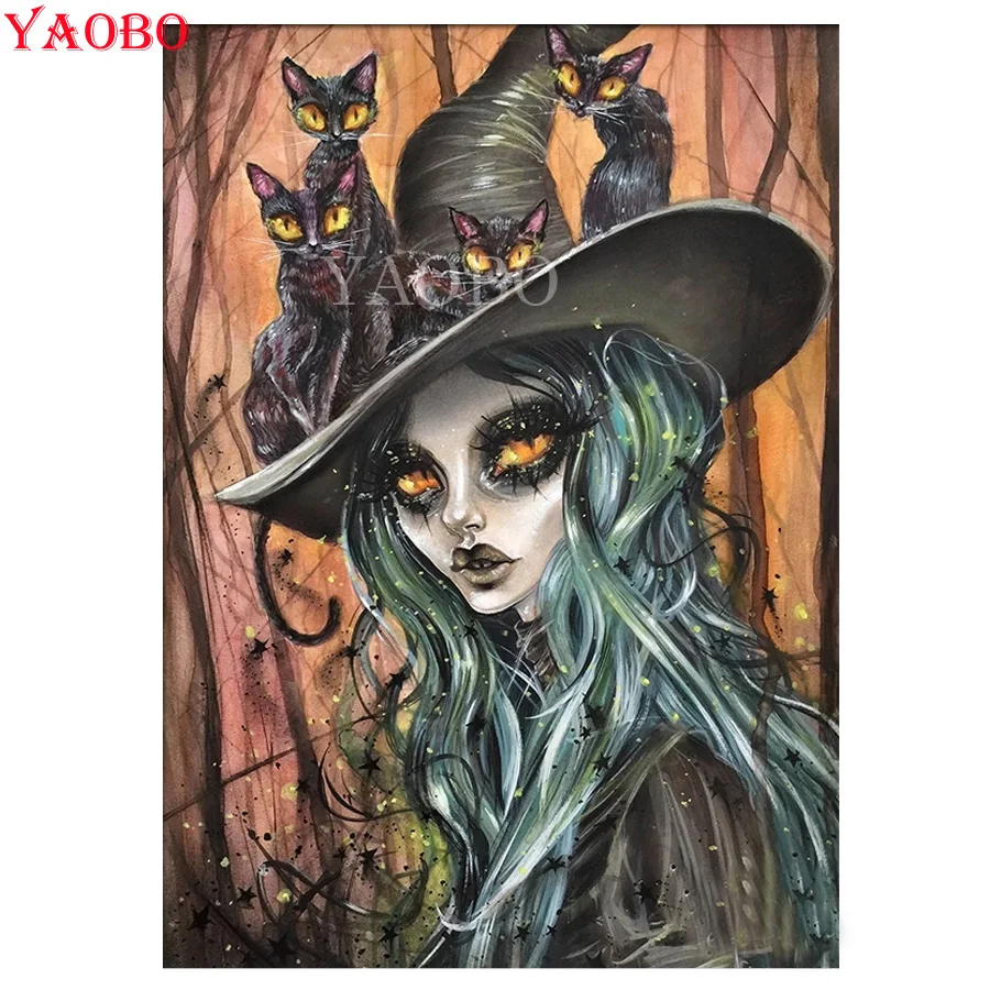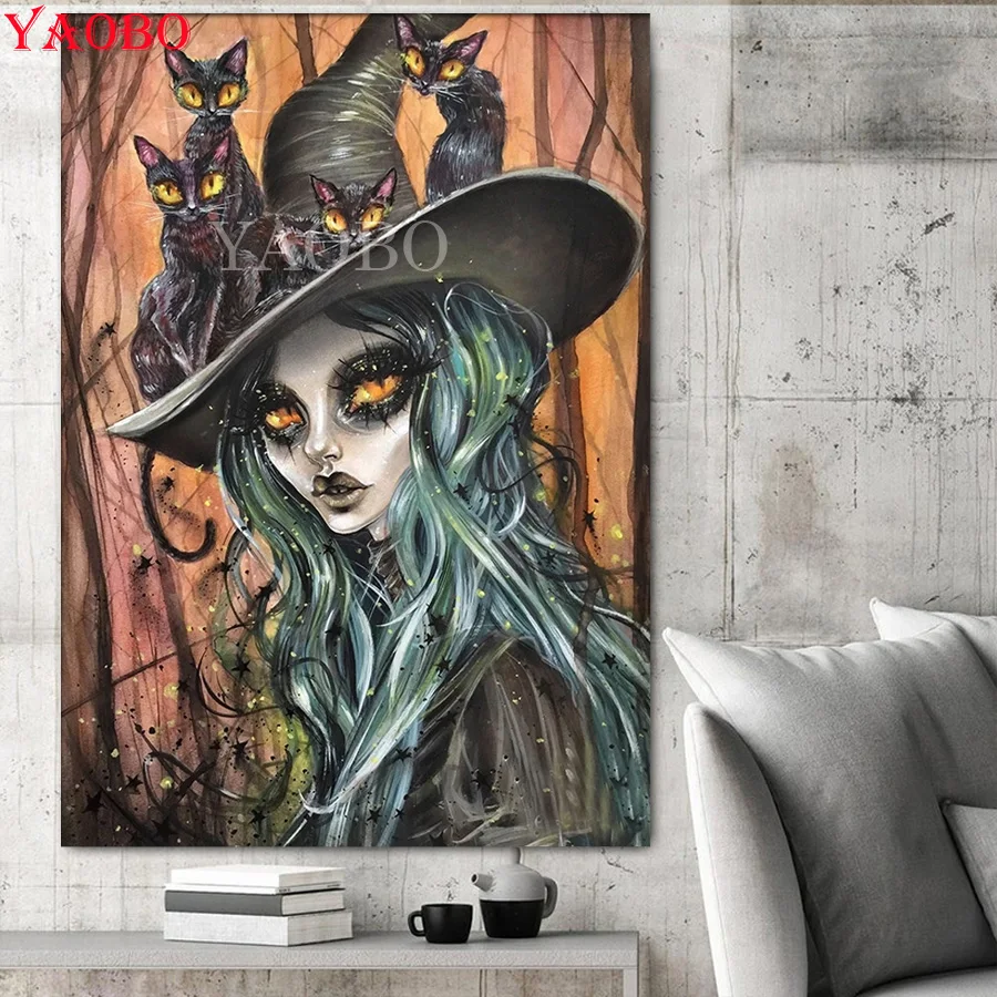 Полностью квадратная/круглая дрель 5D DIY Алмазная вышивка ведьмы девушки и Сфинкс кошки Алмазная картина вышивка крестиком Стразы мозаика
