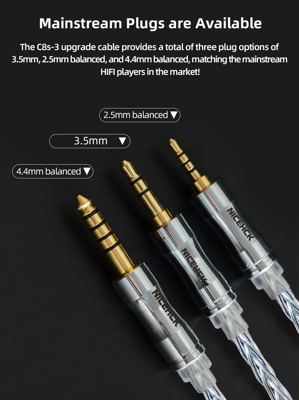NICEHCK C8s-3 8-жильный посеребренный медный кабель для обновления гарнитуры 3,5 мм2,5 мм4,4 мм MMCXNX7QDC0,78 2Pin для DB3 KXXS Kanas MK3