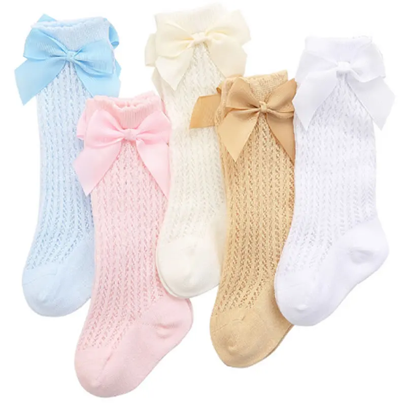 Носки для малышей летние тонкие детские сетчатые носки до колена с бантиком и противомоскитными вставками свободные носки без косточек Prince