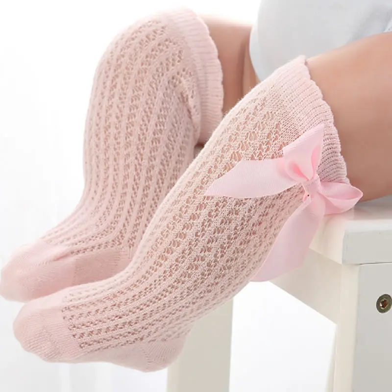 Носки для малышей летние тонкие детские сетчатые носки до колена с бантиком и противомоскитными вставками свободные носки без косточек гольфы для маленьких девочек