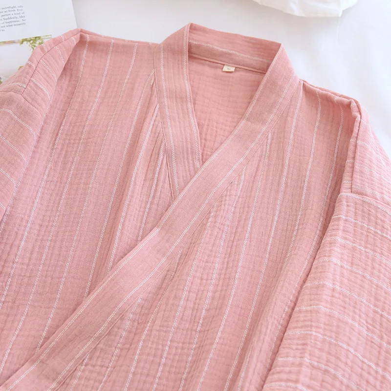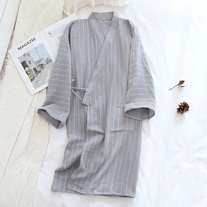 Японское кимоно для пар, ночная рубашка, хлопковая двухслойная креп...