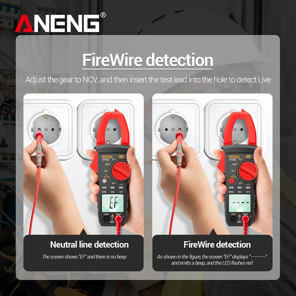 Токоизмерительные клещи ANENG ST18382, цифровые клещи, переменный ток, 6000 отсчетов, истинное среднеквадратичное значение, тестер постоянногопеременного напряжения, Гц, емкость, NCV, Ом