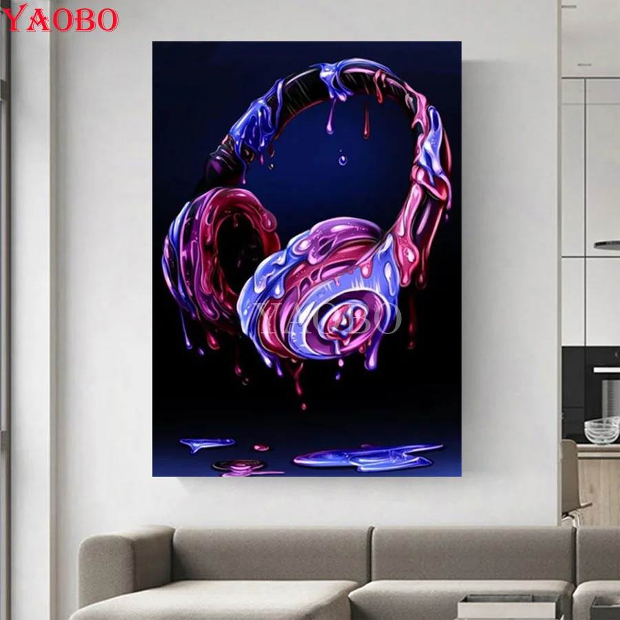 Полный квадратный/круглый 5D DIY алмазная живопись абстрактные наушники Алмазная вышивка крестиком Мозаика картина Стразы