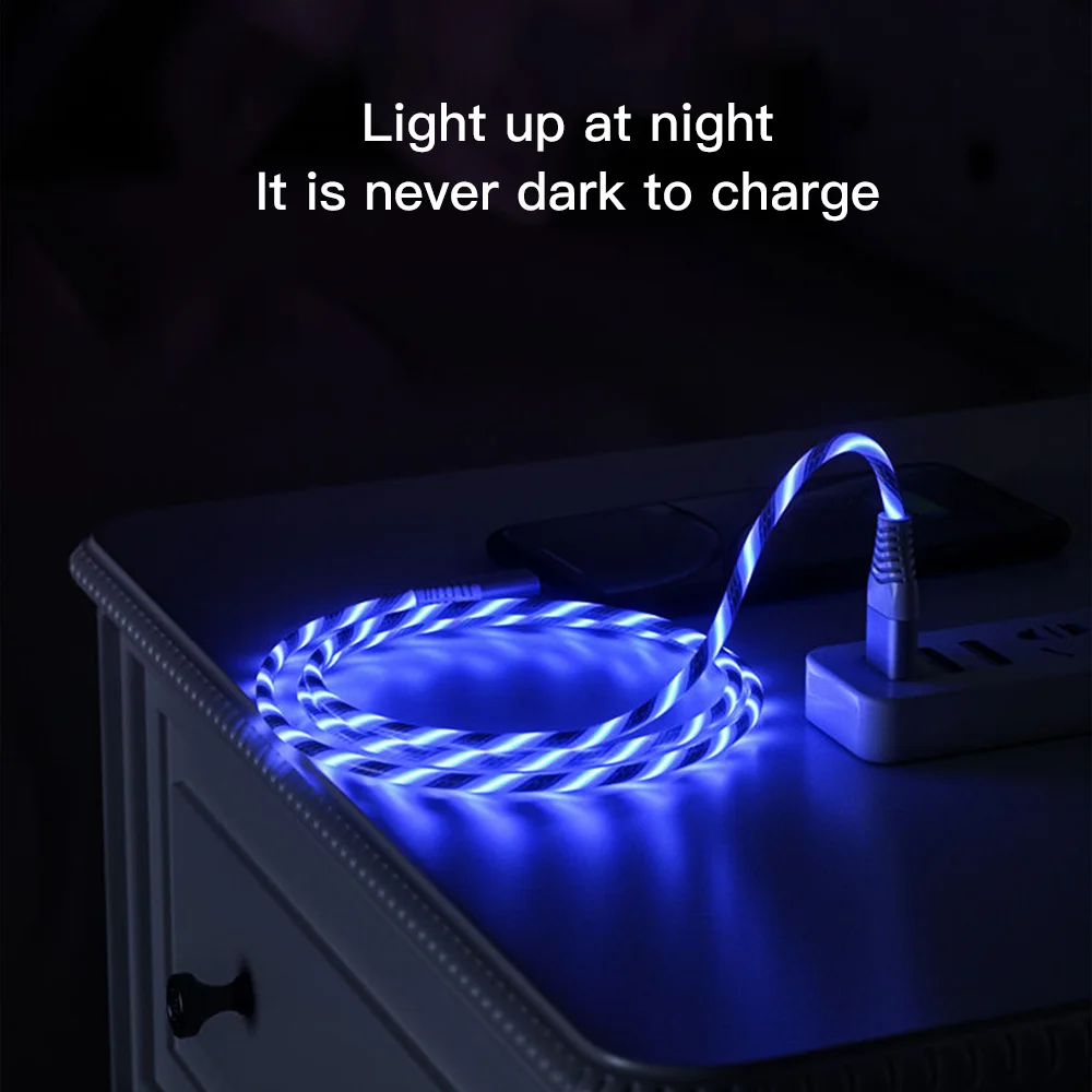 3in1 потока световой освещение usb кабель для Samsung 3 в 1 2in1 светодиодный кабель с разъемом Micro USB Type-C для 8Pin Кабель зарядного устройства для iPhone Huawei Xiaomi