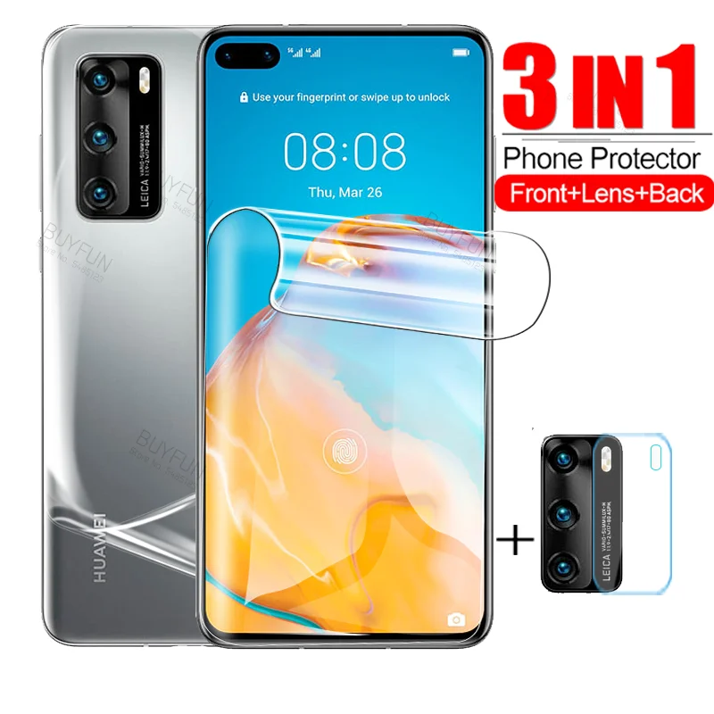 Гидрогелевая пленка 3 в 1 для Huawei P40 Pro Plus, защита экрана и объектива камеры