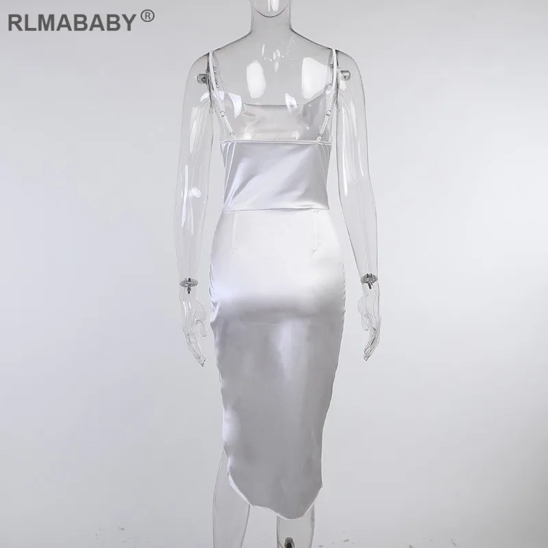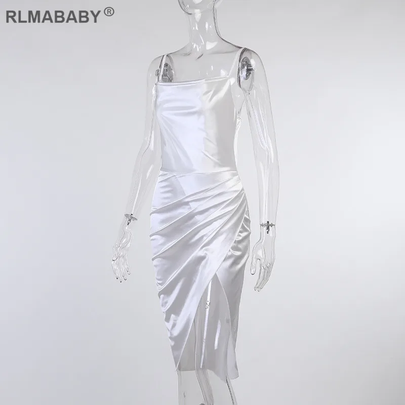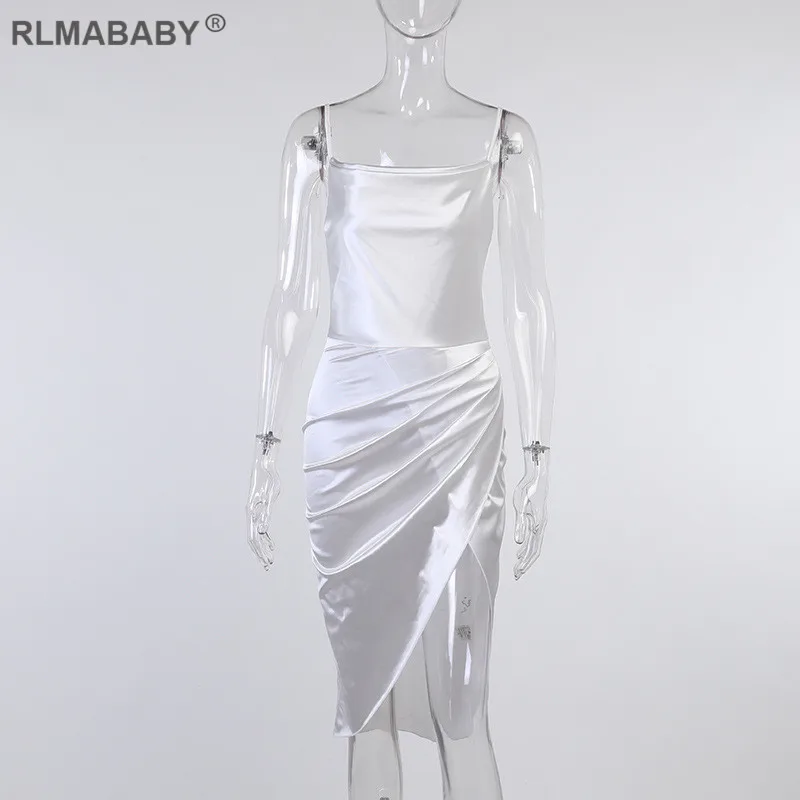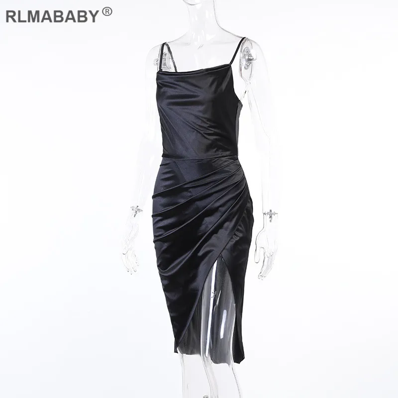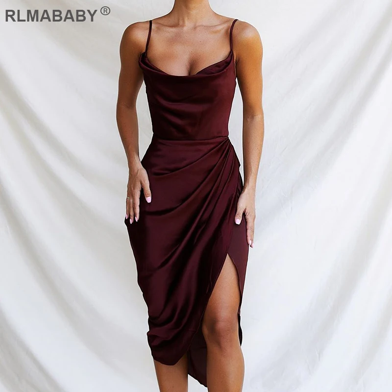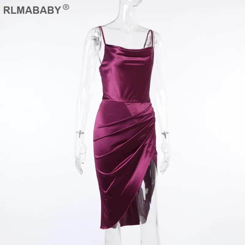 Платье женское атласное с запахом, пикантное элегантное облегающее платье на бретелях-спагетти, с открытой спиной, клубвечерние с оборками