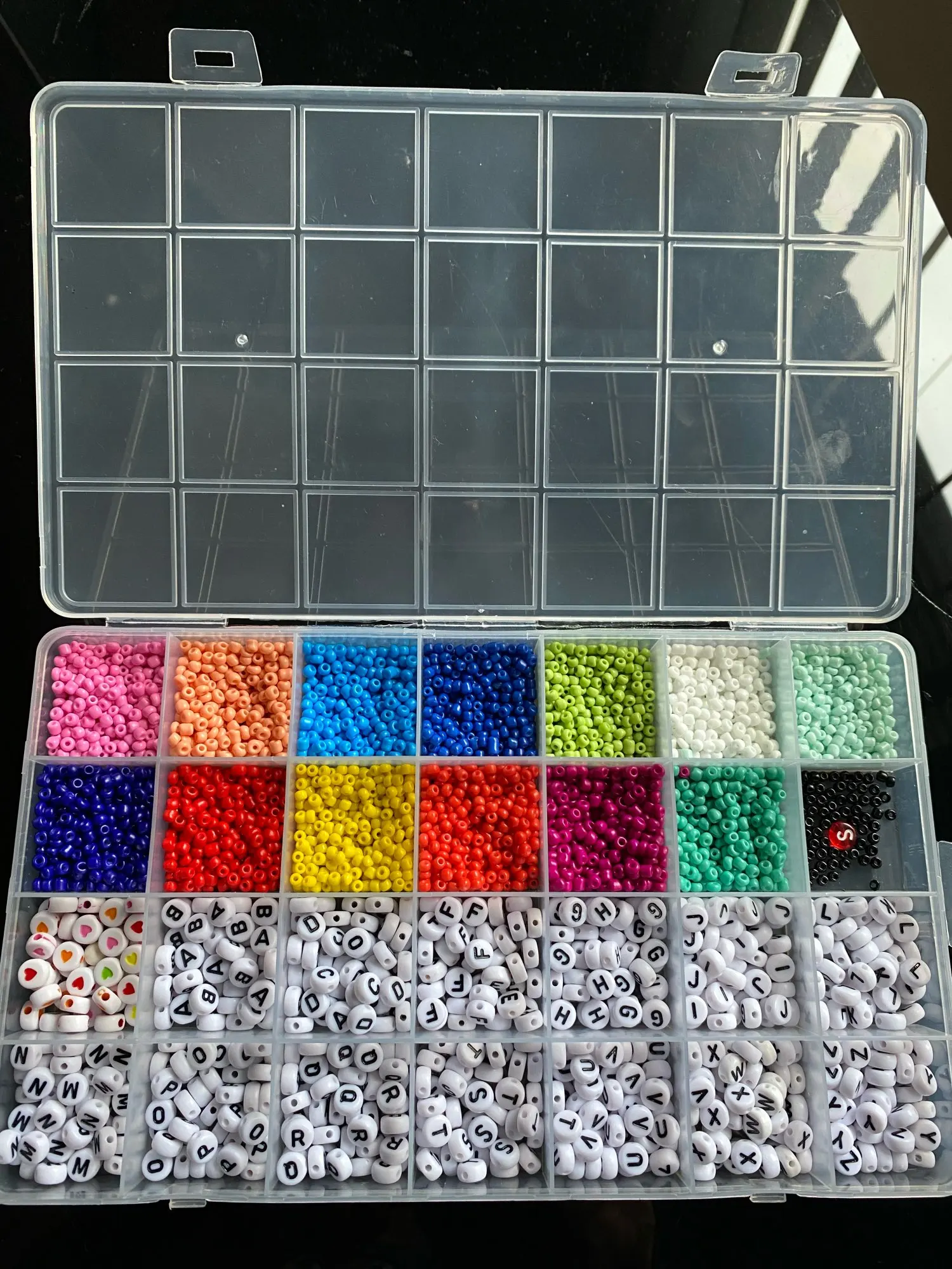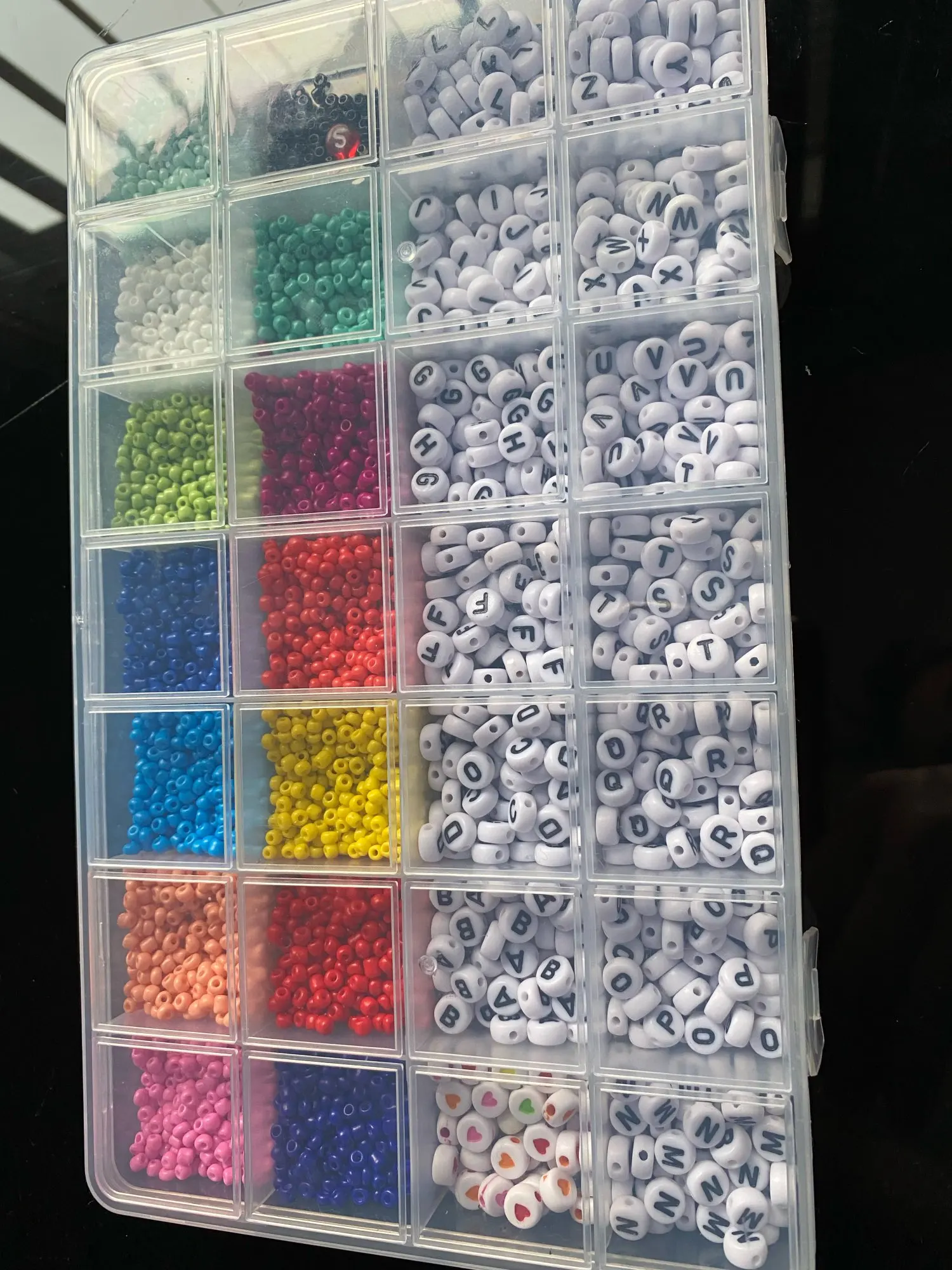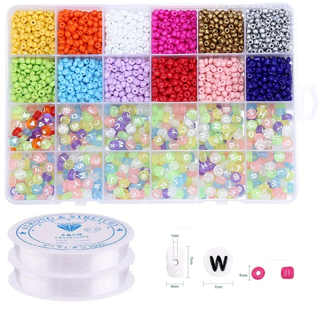 -Набор Бусин содержит 14 цветов стеклянных бусин, в общей сложности 4300 шт.; Буквенные бусины A -Z каждый 25 штук, бусины в форме сердца 50 штук в общей сложности 700 шт. 2 рулона 0,8 мм эластичными завязками.