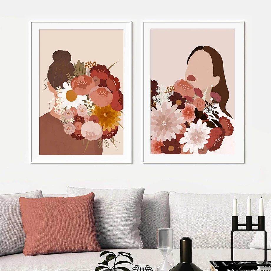 Белая рубашка, девушка, цветок, иллюстрация, бохо, настенное искусс...