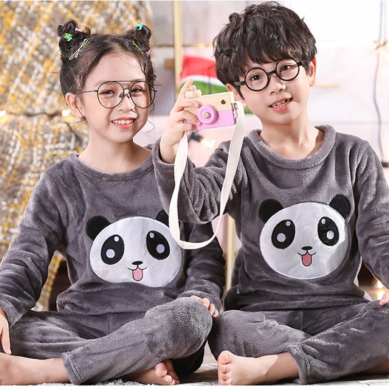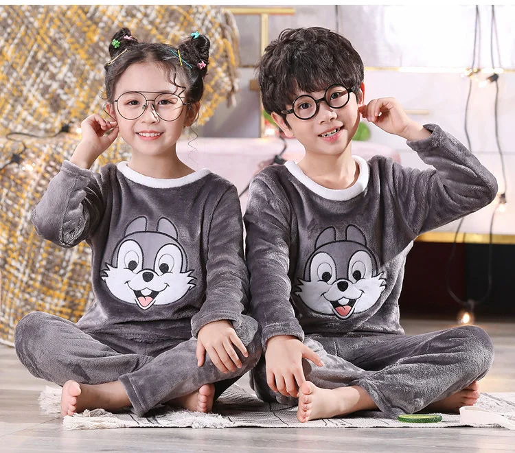 Осенне-зимние детские фланелевые пижамы для маленьких мальчиков и девочек Детские плотные милые мягкие комплекты с кроликом Банни флисовые комплекты для подростков и мальчиков
