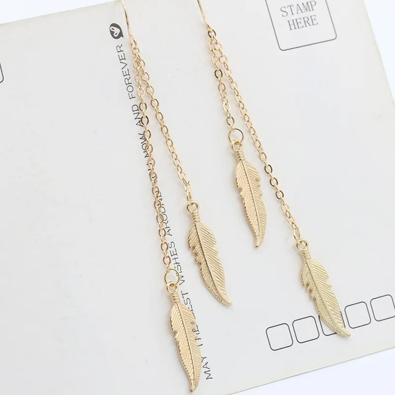 Серьги-клипсы женские JIOFREE, из сплава, с перьями, на длинной цеп...
