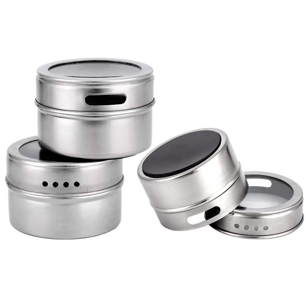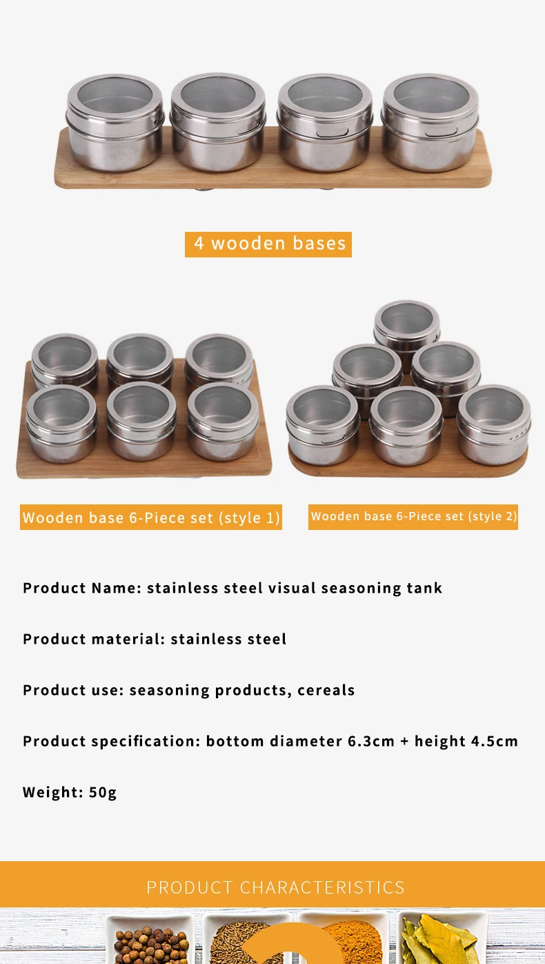 ** Хорошие магнитные свойства-контейнеры для хранения олова для специй, включая магнитные днища, резервуары для хранения имеют магнитный держатель, прилипают к любой плоской металлической поверхности, что позволяет легко организовать другие предметы.