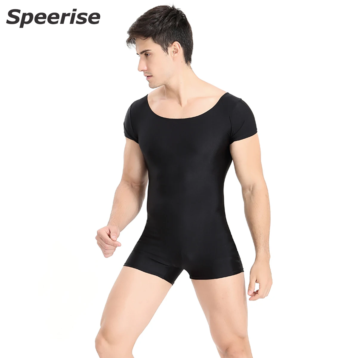 NameSPEERISE Men One Piece Basic Unitard Adult Ballet Short Sleeve Scoop N