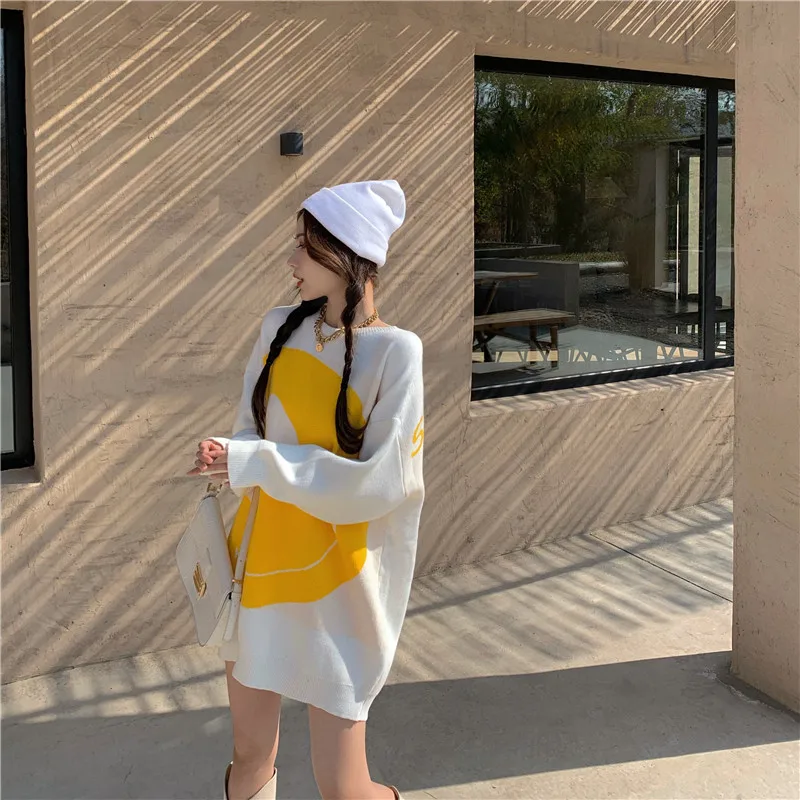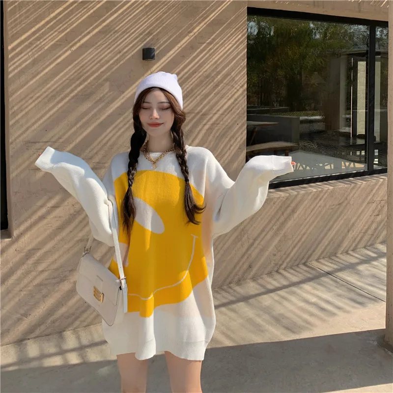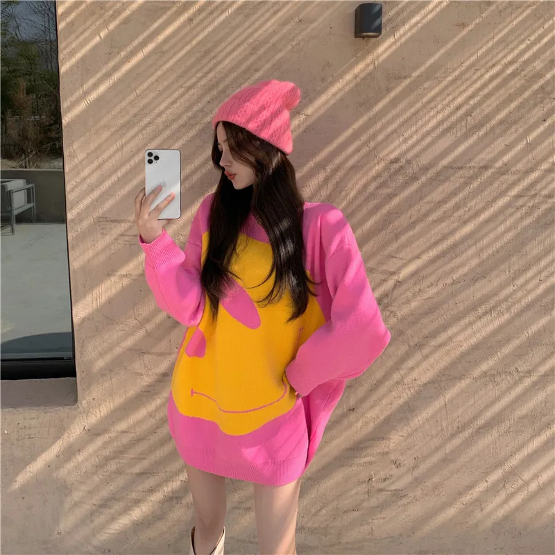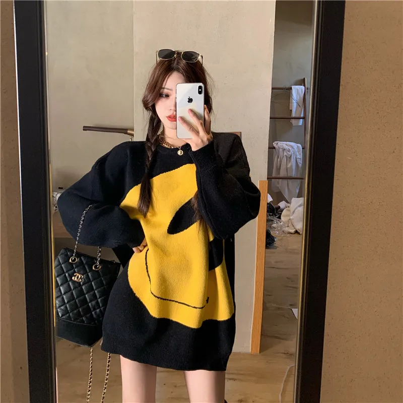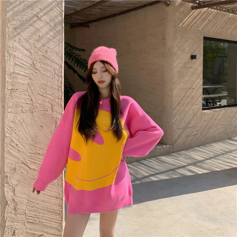 Свитер оверсайз свободного кроя с симпатичным рисунком в стиле симл, Элегантные повседневные модные Универсальные пуловеры, зимний утепленный свитер 2020