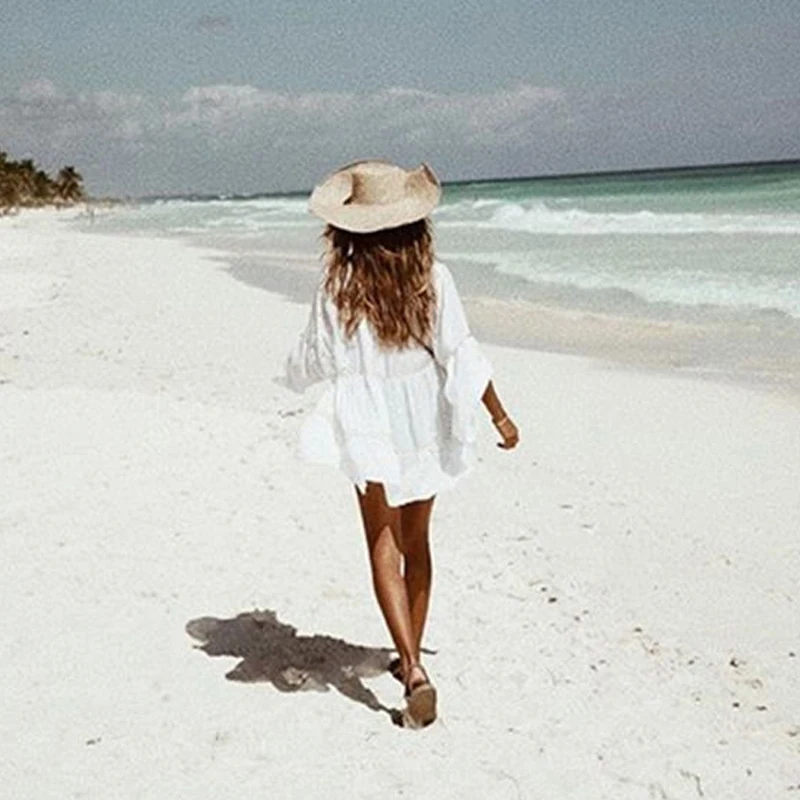 Женская кружевная вязаная крючком однотонная накидка, Пляжное сексу...