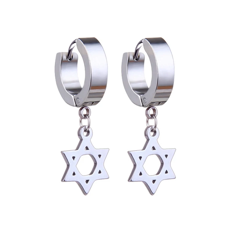 Серьги-кольца унисекс, из нержавеющей стали, с подвеской в виде кре...