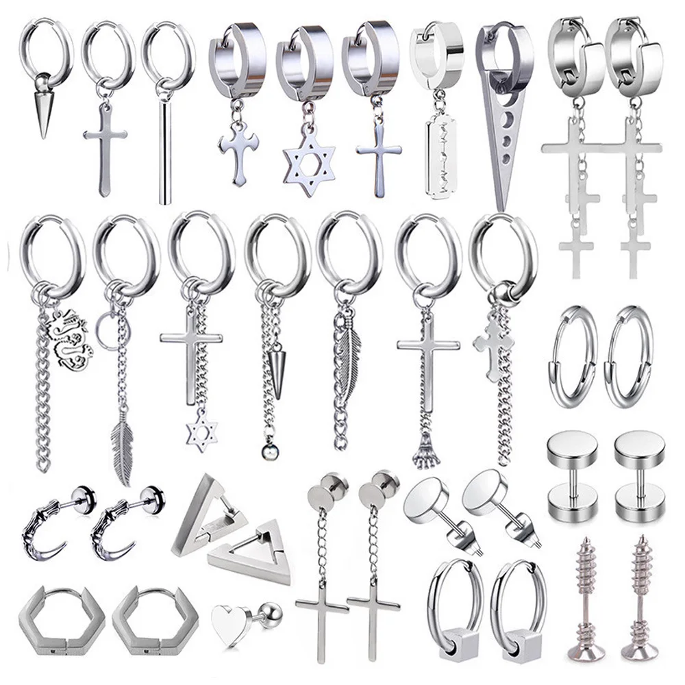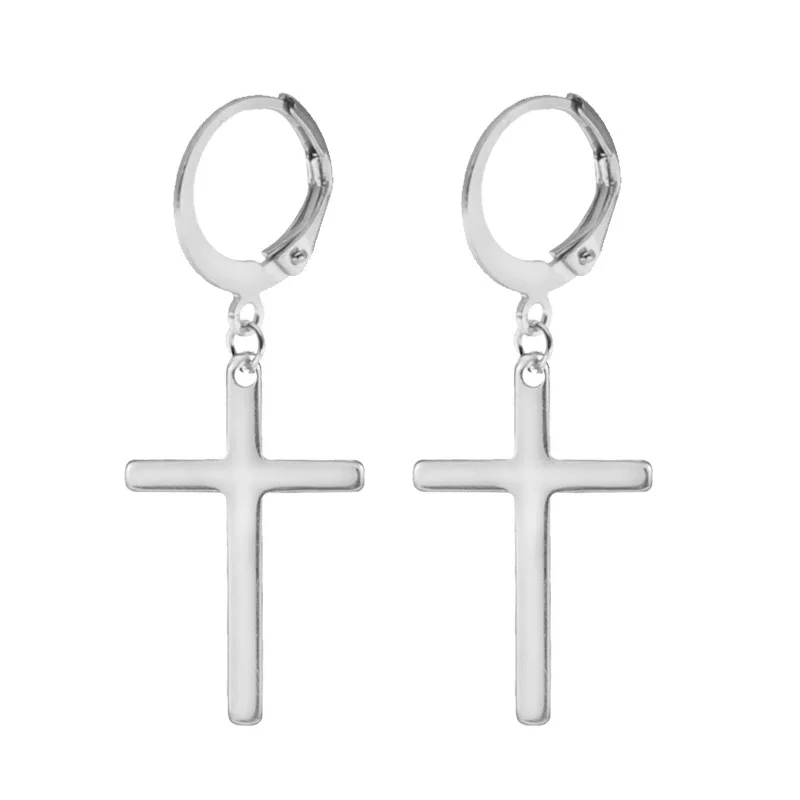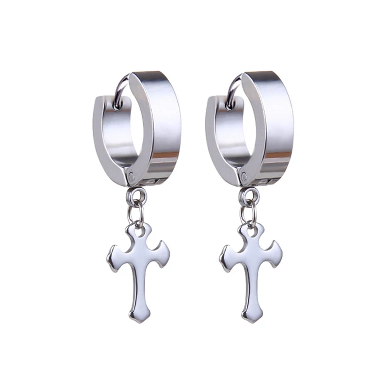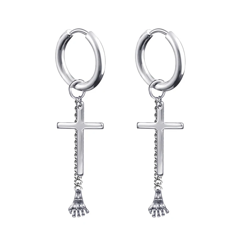 Новейшая модель; 1 пара из нержавеющей стали крест кулон длинные висячие серьги с длинной бахромой унисекс серьги в виде колец, для мужчиндля женщин в стиле готик-панк ювелирные изделия лучшие подарки