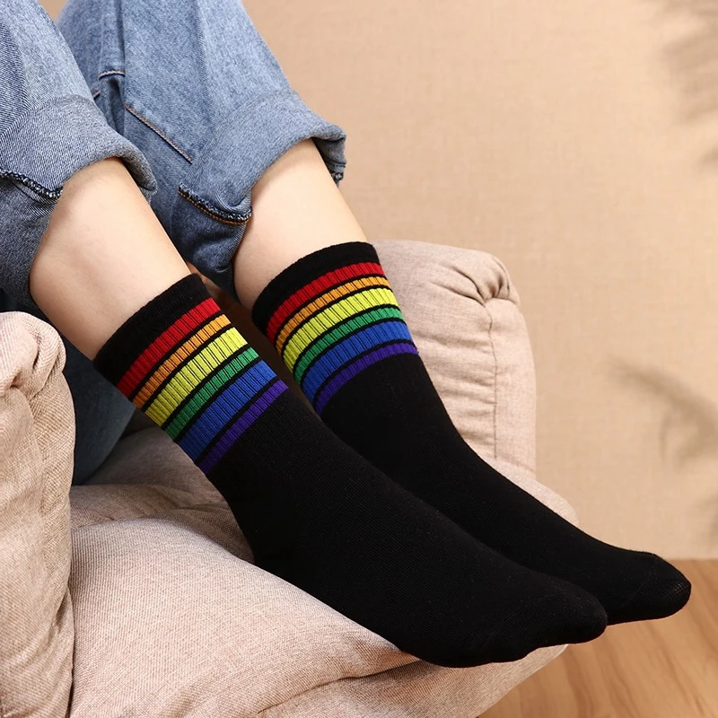 Юбки-пачки радужной расцветки велосипедные спортивные носки для занятий спортом на открытом воздухе Смешные 100 хлопок Harajuku, дизайнерские штаны для мальчиков в полоску, Стандартный Длина носок спортивная одежда