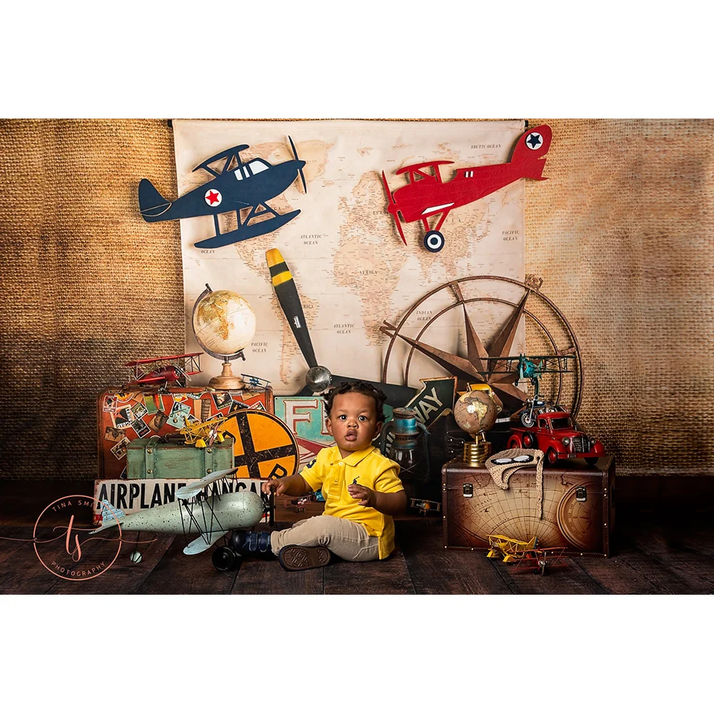 Фон для фотосъемки новорожденных с летательным аппаратом и пилотом