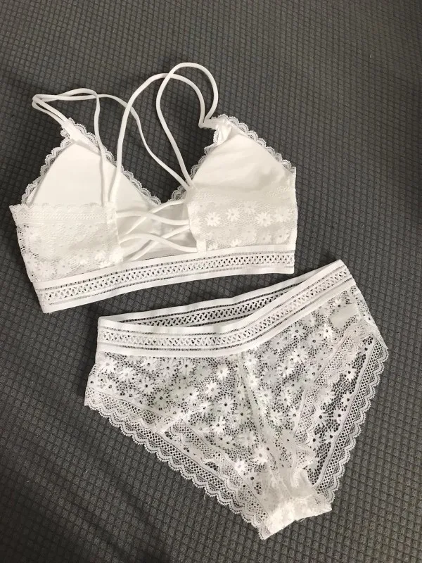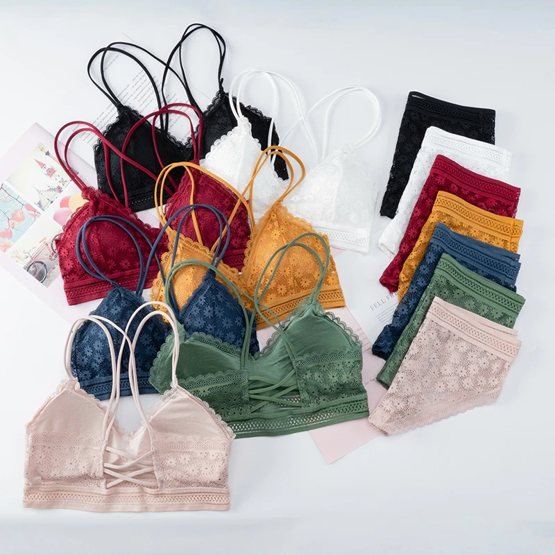 Бюстгальтер женский кружевной бесшовный с открытой спиной и трусиками, ультратонкие трусики