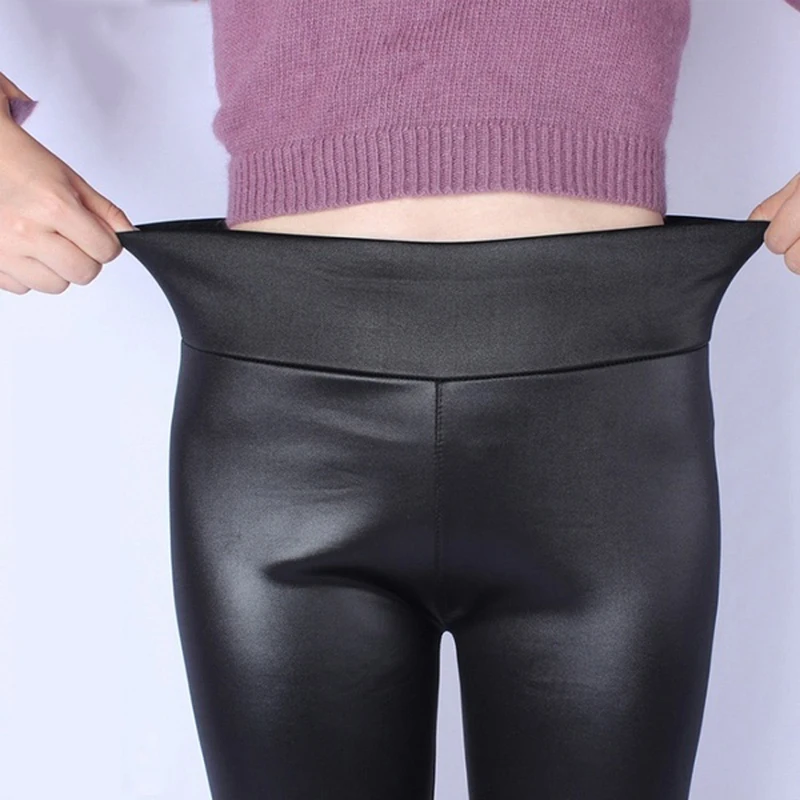 Брюки женские из искусственной кожи, Стрейчевые облегающие леггинсы с высокой талией, черные брюки
