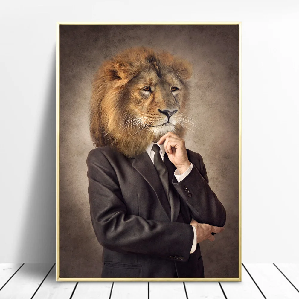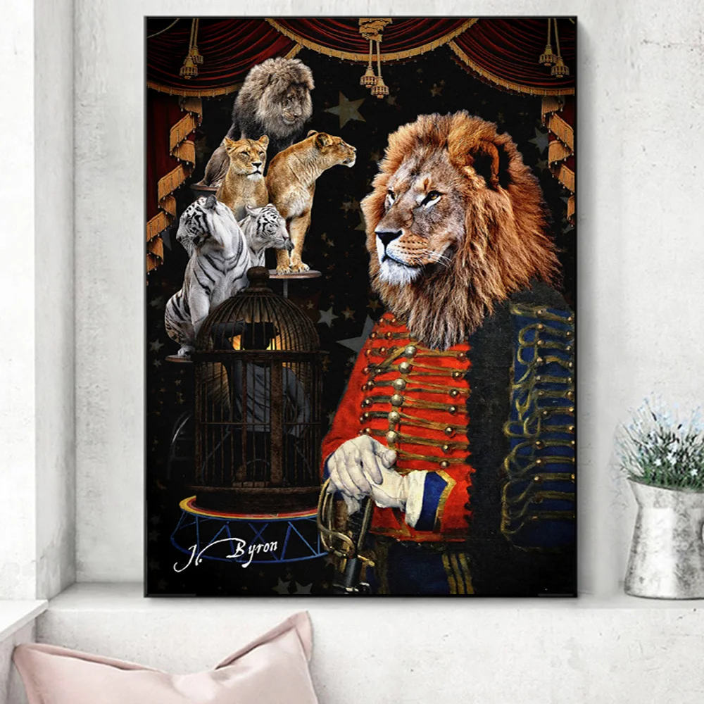 Курение Король Лев и слон, носорог холст картины Забавный цирк Животные Плакаты и принты домашний Декор стены в искусстве