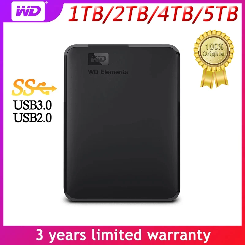 Внешний жесткий диск Western Digital WD Elements 2,5 дюйма, 1 ТБ, 2 ТБ, 3 ТБ, 4 ТБ, 5 ТБ, USB3.0, внешний жесткий диск для настольных ПК, ноутбуков, ПК