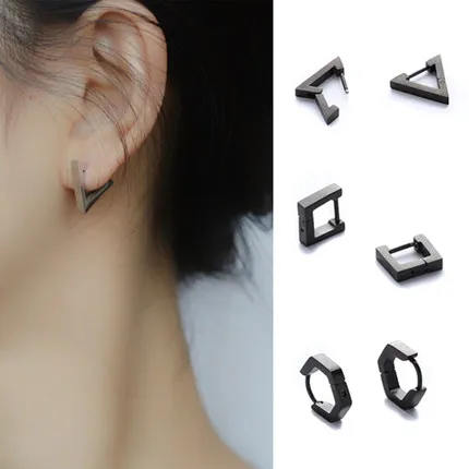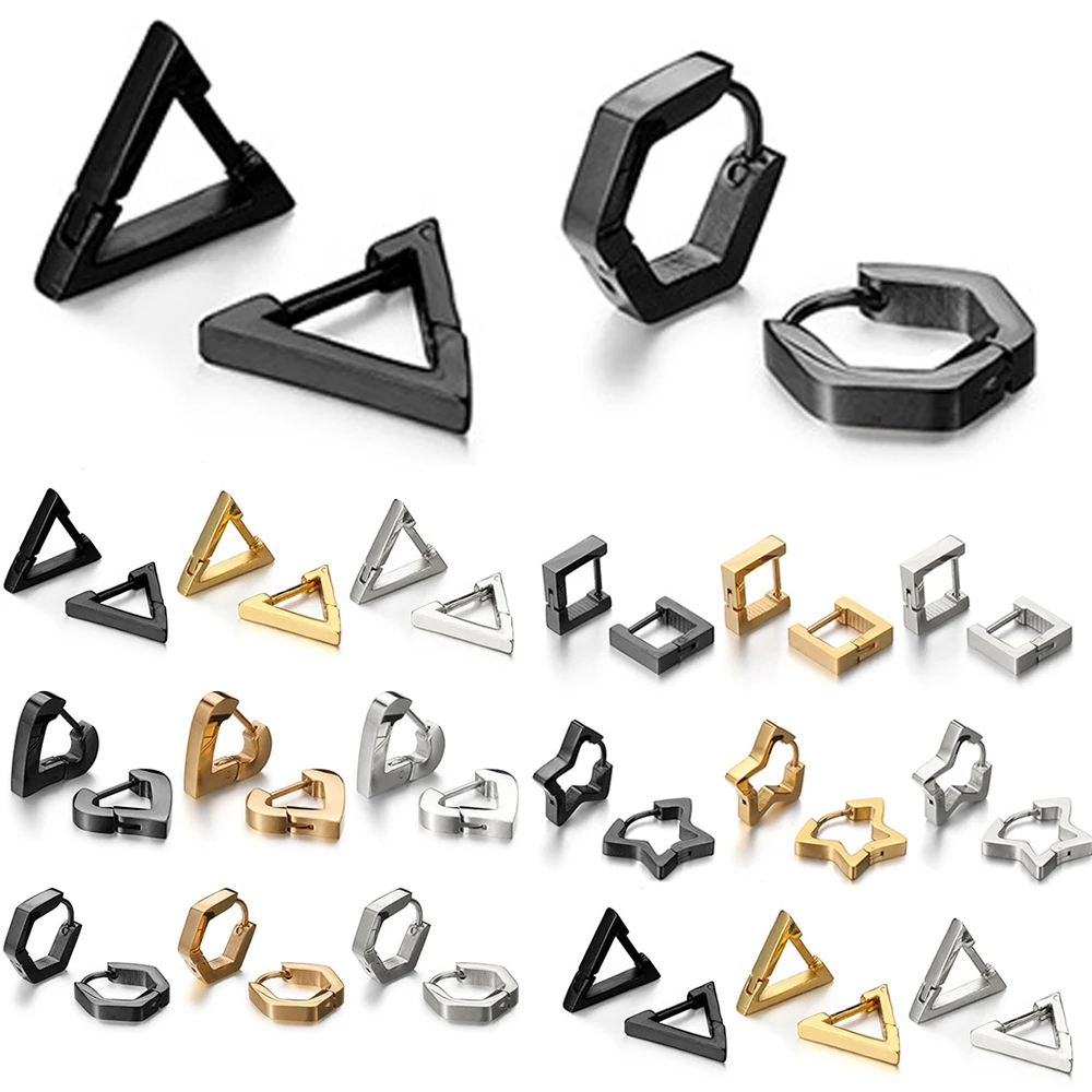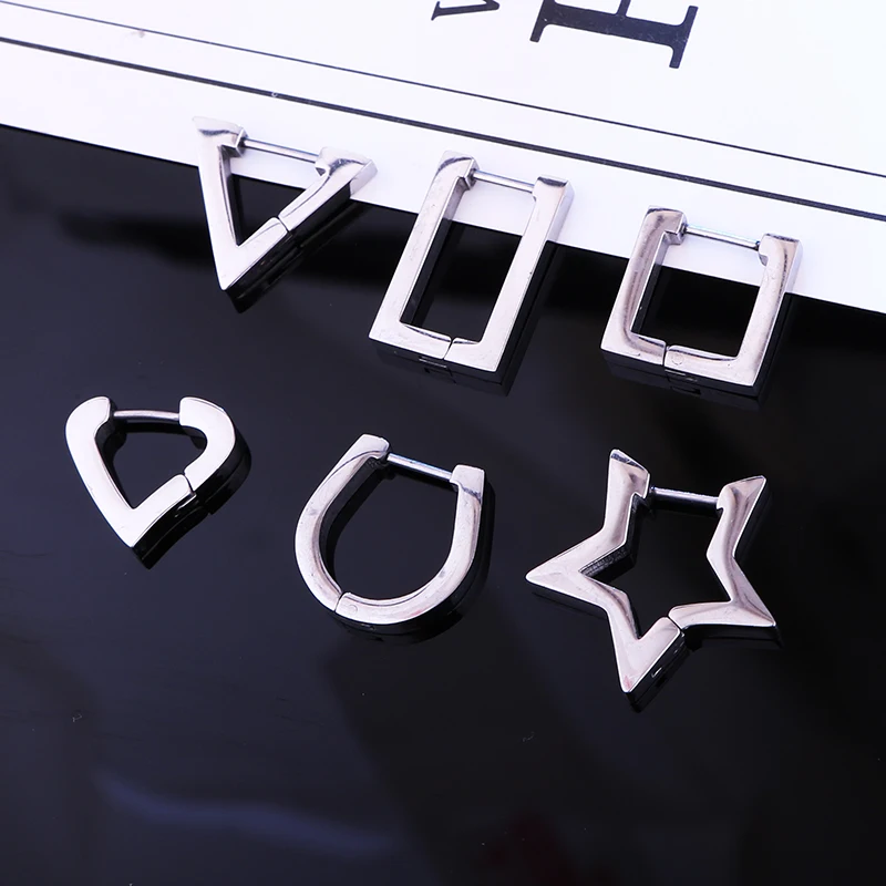 Серьги-клипсы унисекс из титановой стали, стильные ювелирные украшения для мужчин и женщин в стиле панк, геометрические многоугольные, в форме сердца, треугольника, колец