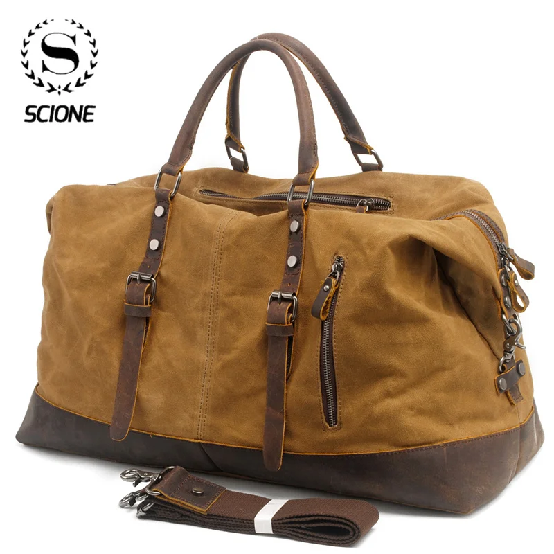 Водонепроницаемая холщовая кожаная дорожная сумка Scione для мужчин, вощеные чемоданчики для ручной клади, большая спортивная сумка-тоут для выходных
