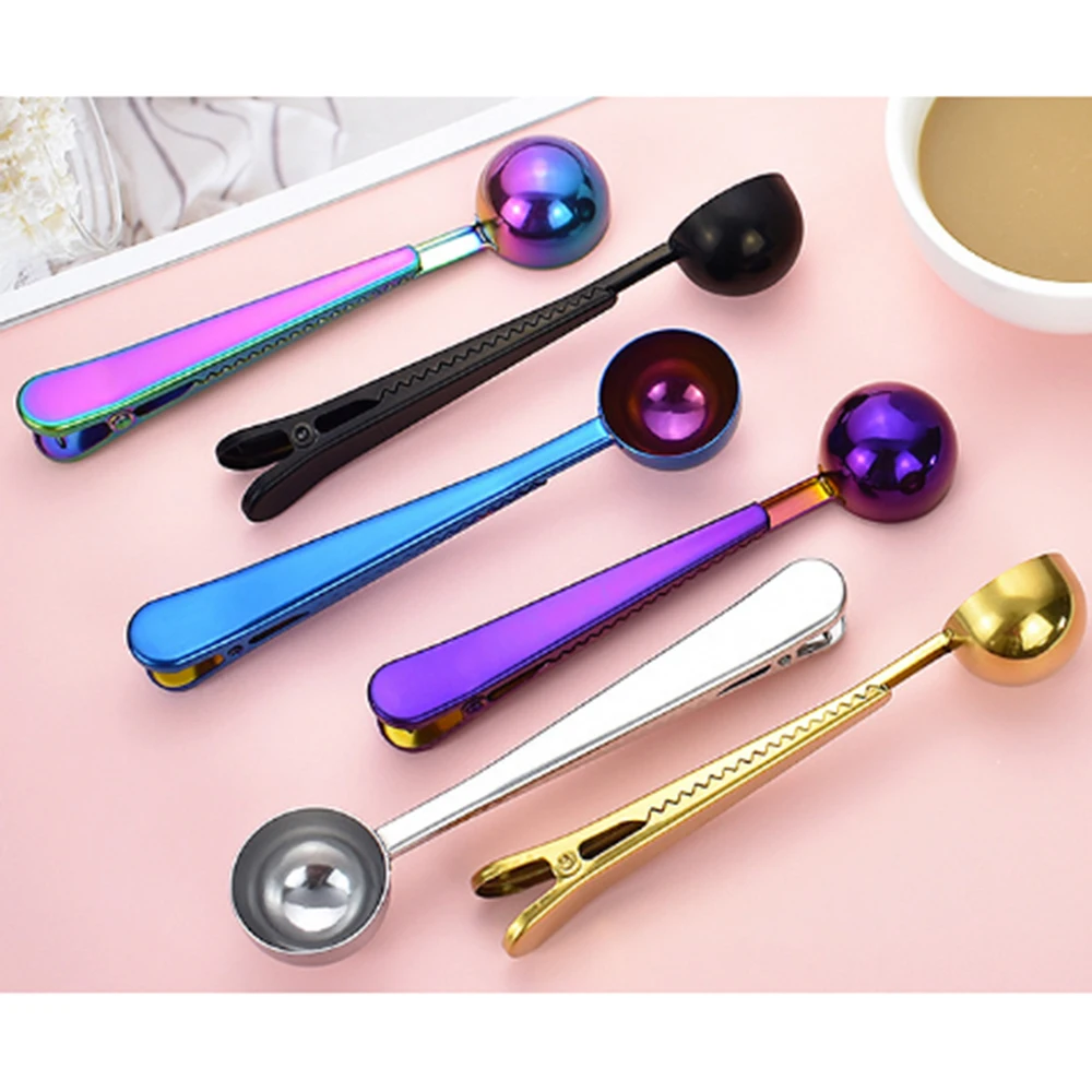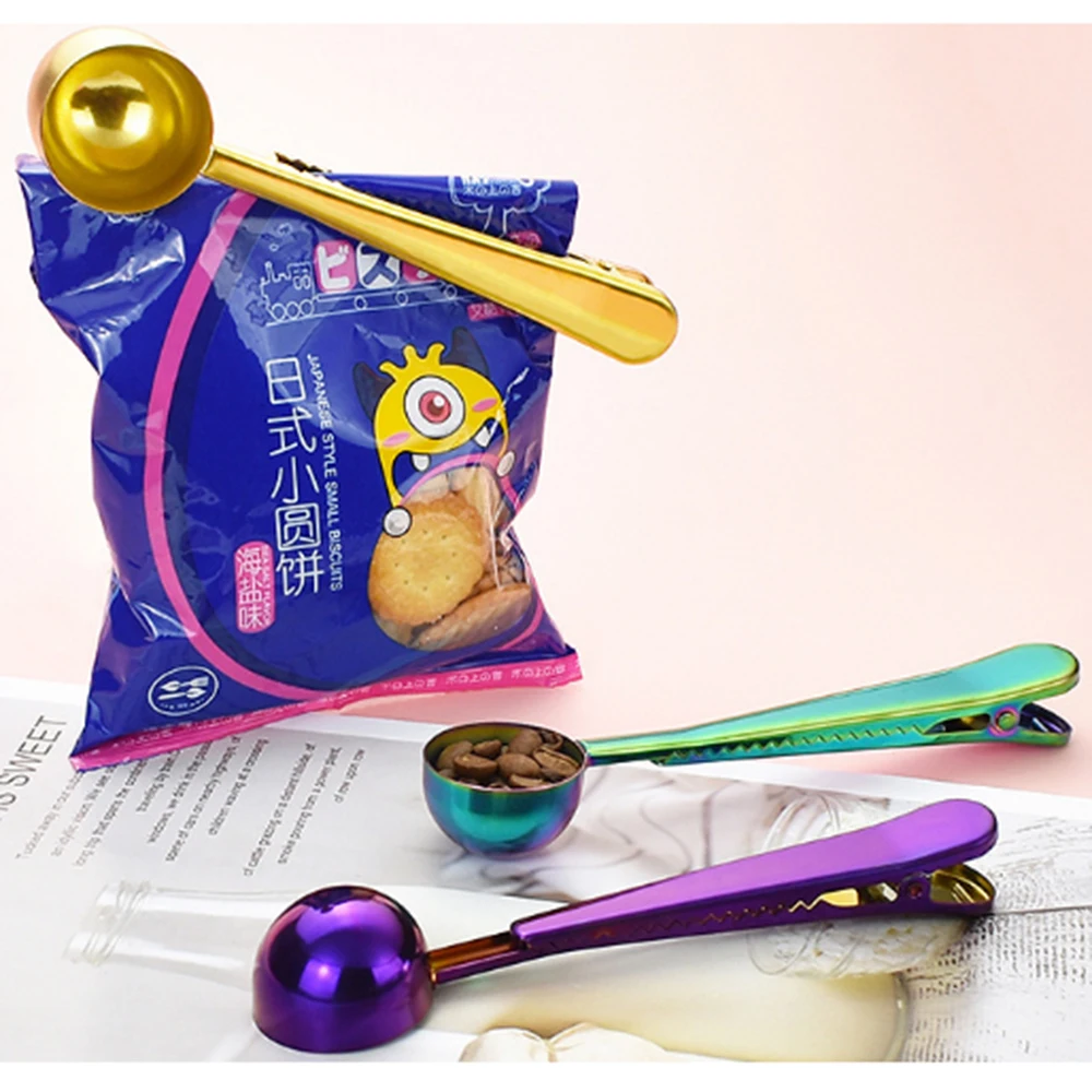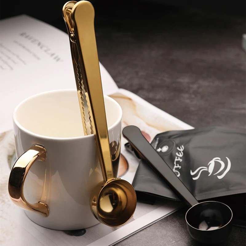 Два в одном, Нержавеющаясталь Кофе ложка уплотнительный зажим Кухня золото аксессуары ванной комнаты получателя кафе нержавеющей стали нержавеющие Cucharilla украшения Применение