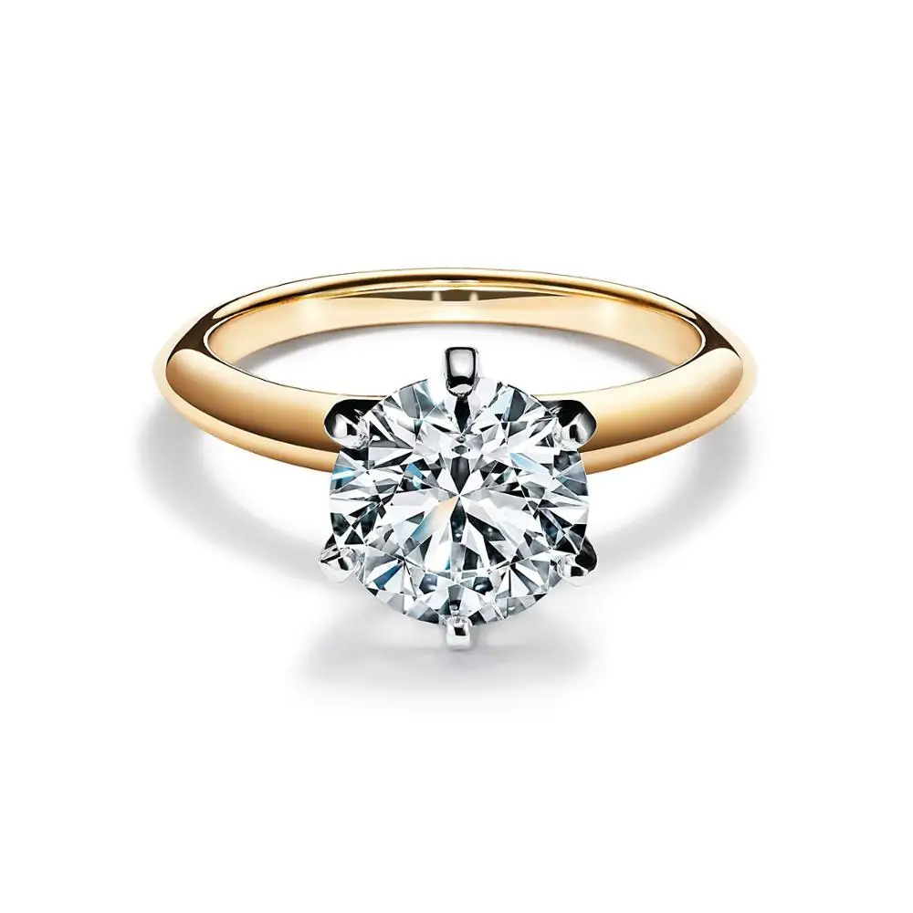 Простой 6 когти из 18-ти кратного желтого золота кольцо круглой огр...