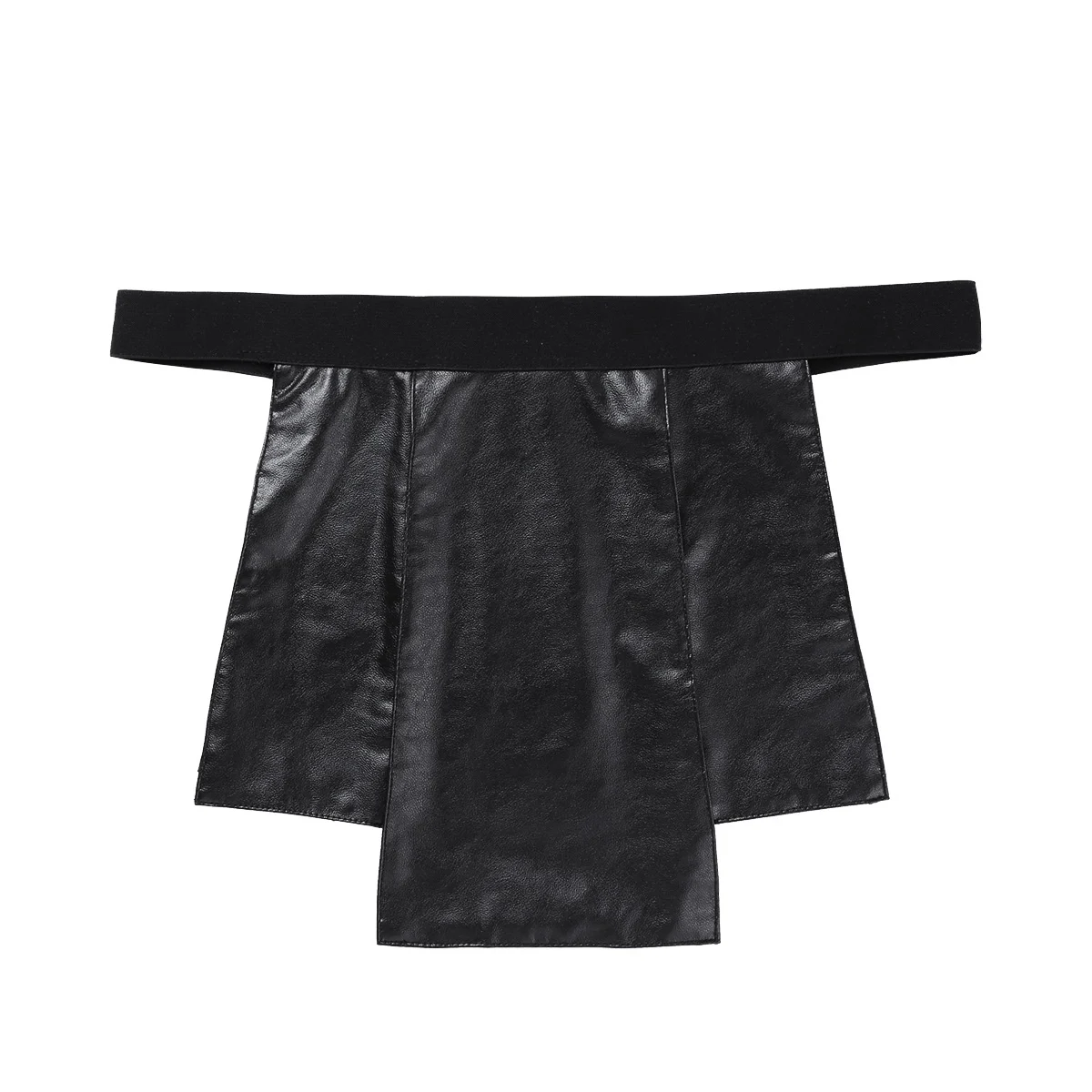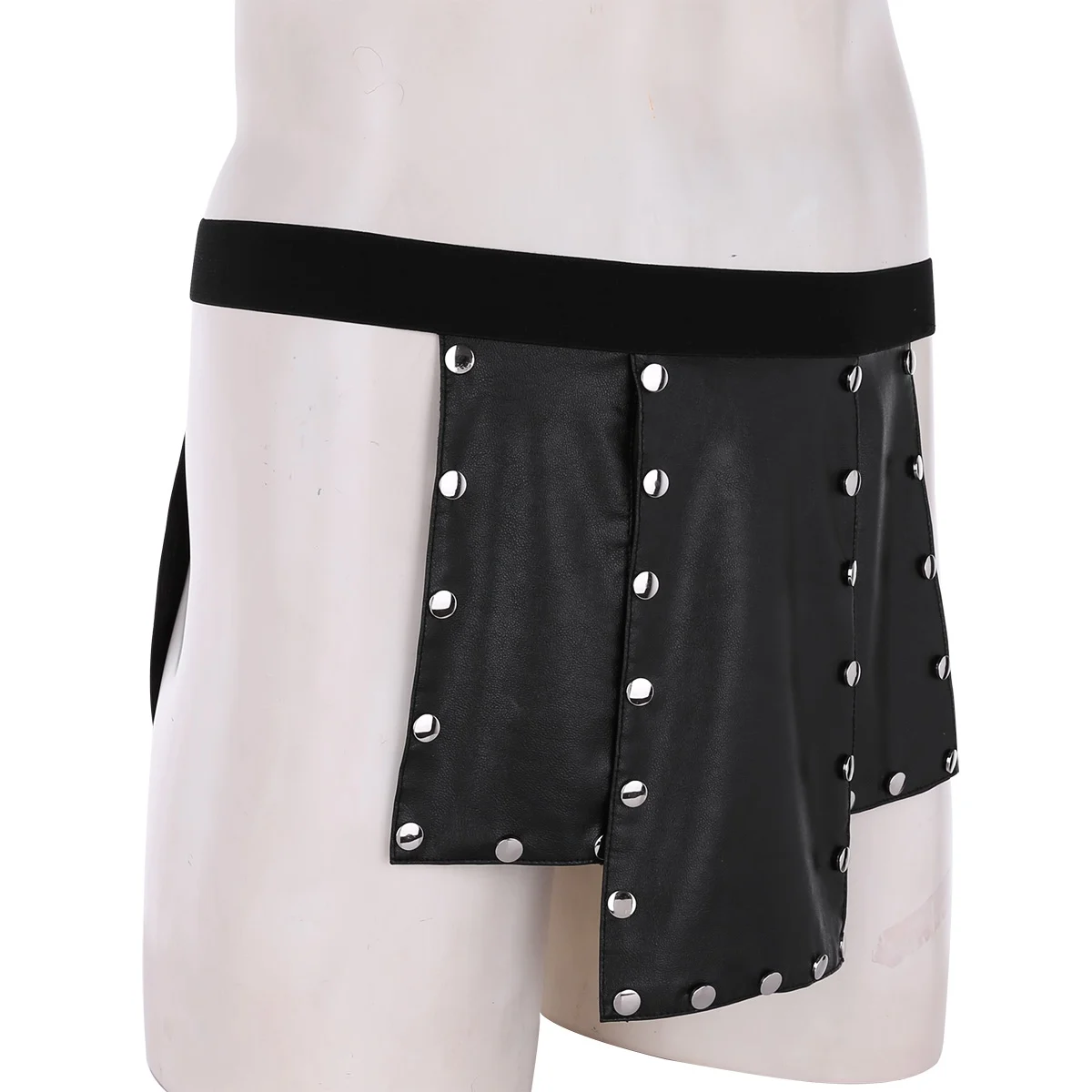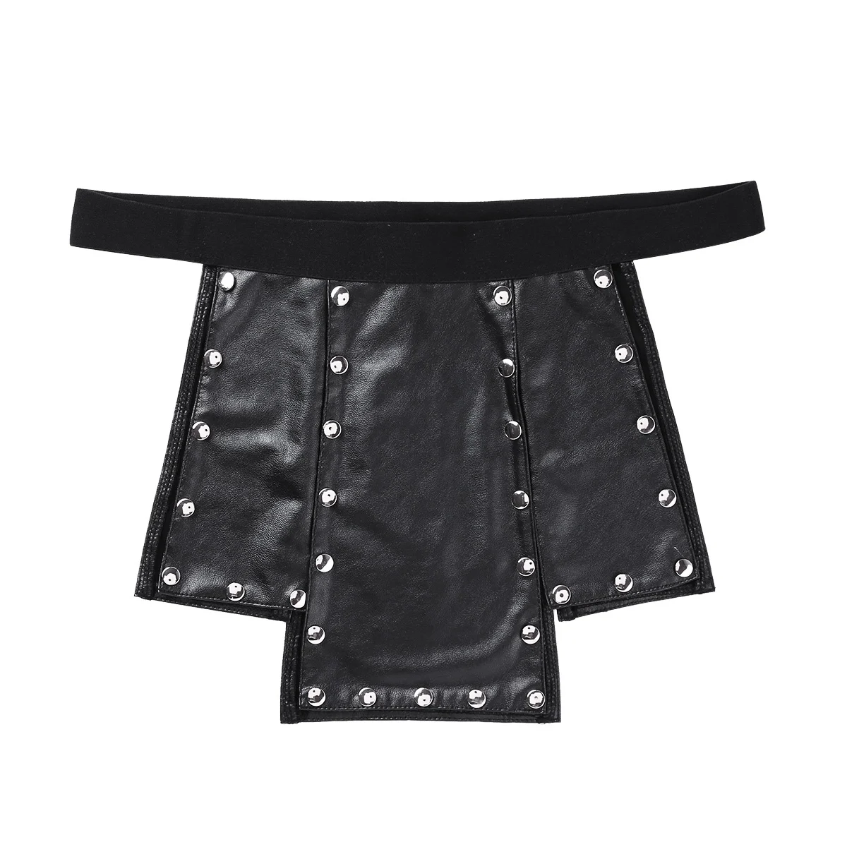 Черное Мужское нижнее белье, нижнее белье без промежности, новинка, 6 панелей, искусственная кожа, низкая посадка, открытая промежность, металлические шипованные, нижнее белье, юбка