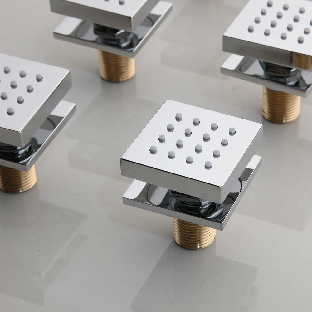 Высококачественный латунный материал, размер диаметром 2 дюйма (50 мм), направление вращения вверх/вниз/влево/вправо, Комбинация 4 струй корпуса, отрегулируйте соответствующие детали в соответствии с вашими требованиями, наслаждайтесь полноценным душем, вы можете принимать душ со всех сторон и наслаждаться бодрящим, что позволит вам ощутить ощущение домашнего спа.