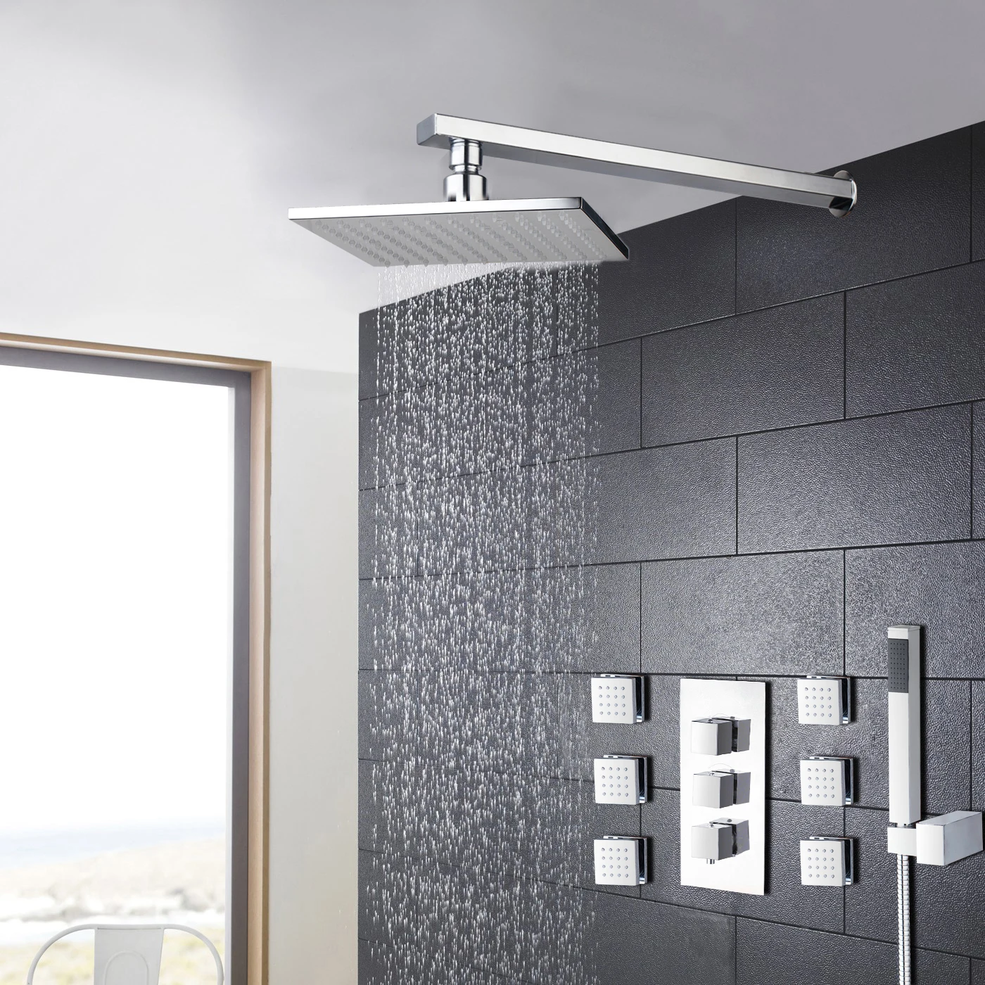 Высококачественный медный материал, три функции, вы можете выбрать воду из душевой лейки, ручной или корпусной струи, однорычажный контроль горячей и холодной воды.