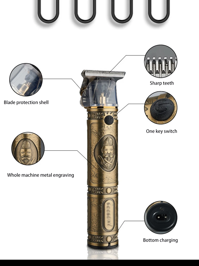 Бронзовый металлический триммер для волос для мужчин, беспроводной триммер для волос, триммер для бороды, парикмахерский Набор для стрижки волос, для парикмахера