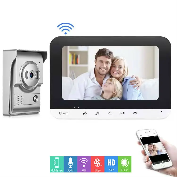 Видеодомофон с 7-дюймовым экраном, запись и Wi-Fi, система видеодом...