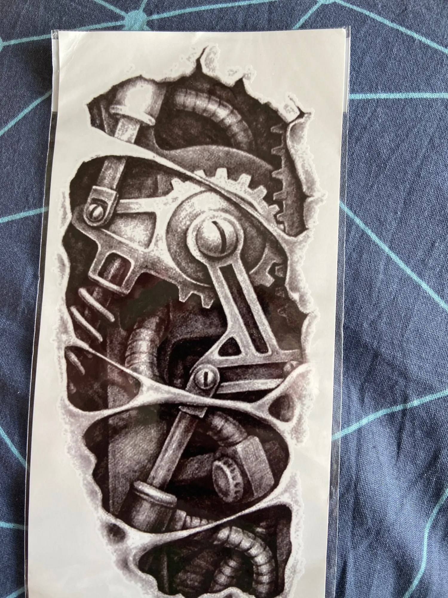 Тату-наклейки на руку для мужчин, стильные временные тату-наклейки 3D с полурукавом, механические боди-арт для мальчиков, черный цвет
