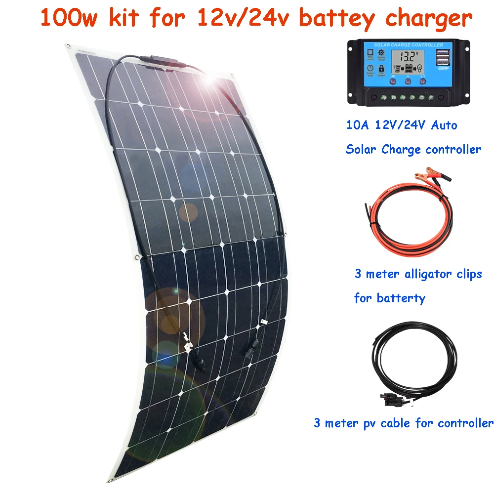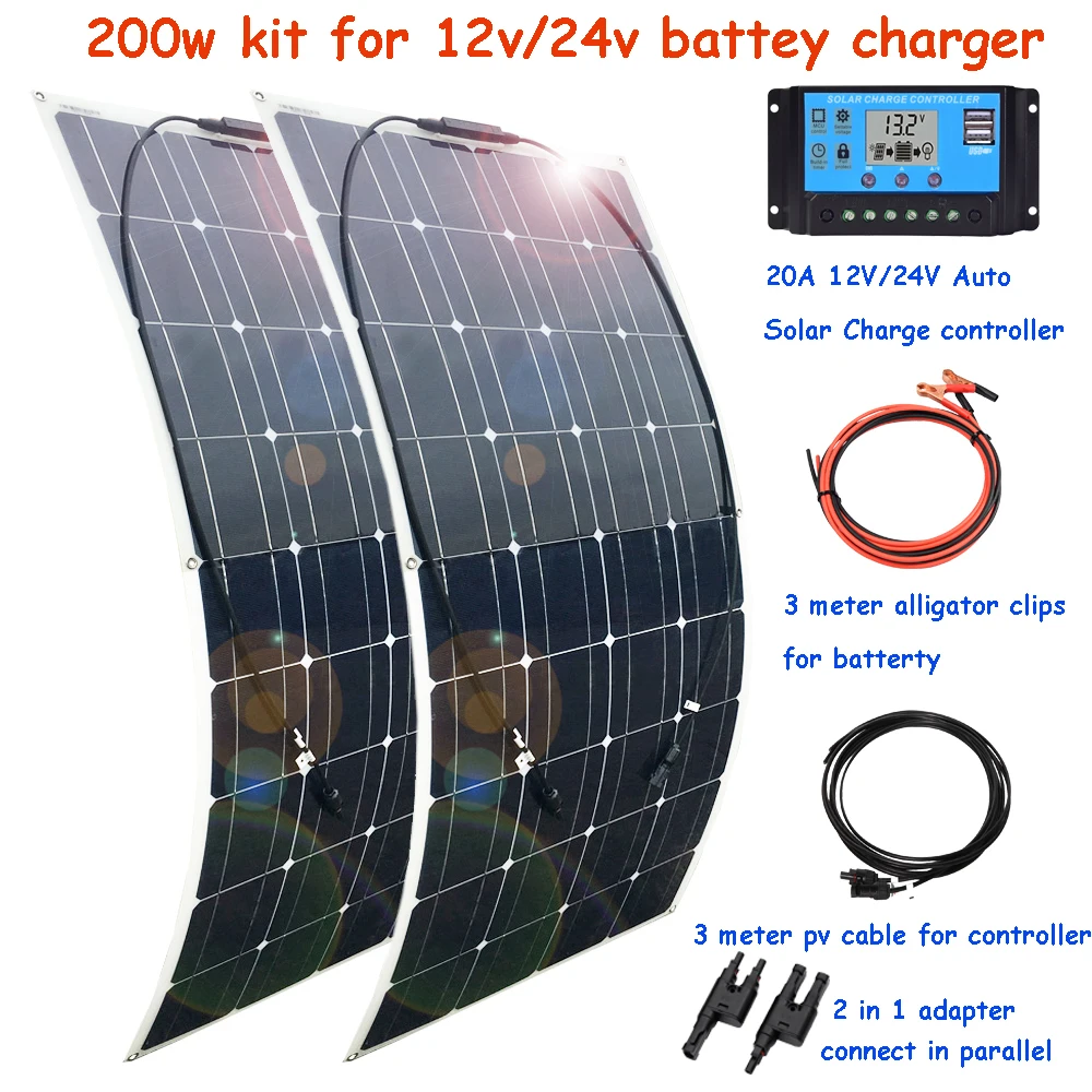 солнечная батарея панель 12V Комплект солнечных панелей 12 В 300 Вт 200 Вт Зарядное устройство 12 В 24 В с контроллером 30 А для автомобиля RV лодка караван кемпер водонепроницаемый открытый дом