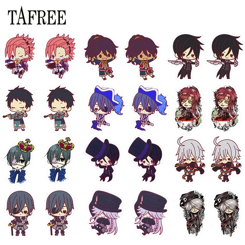 TAFREE ЯПОНСКИЕ ВИНТАЖНЫЕ Аниме черные дворецкий иконы эпоксидные серьги искусство крошечные ручной работы Клипсы Серьги термоусадочные девушки ювелирные изделия для ушейФотографии товара: