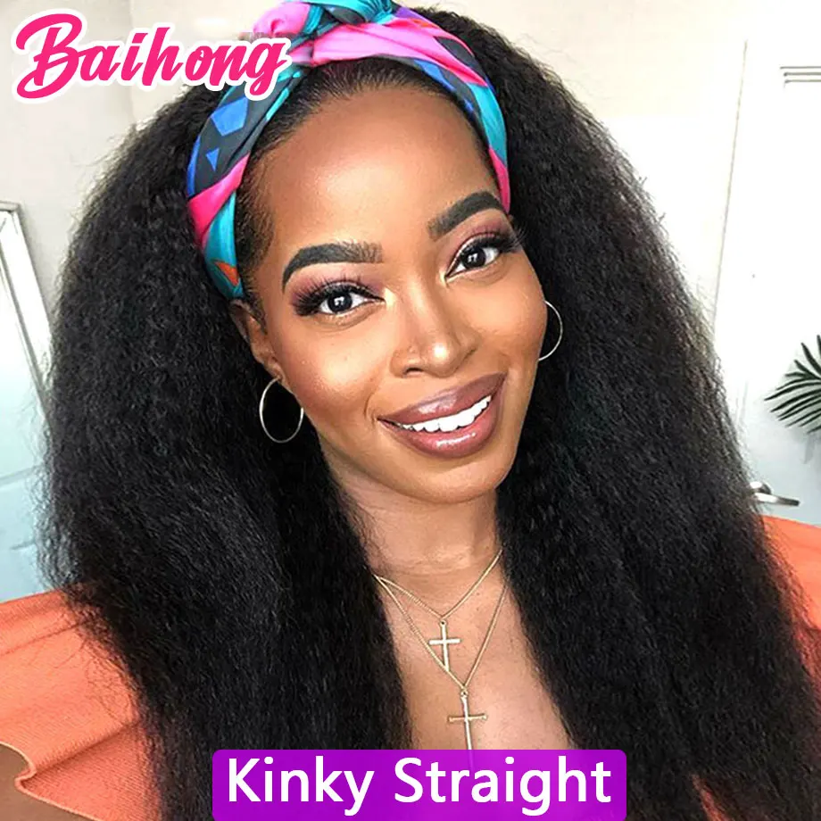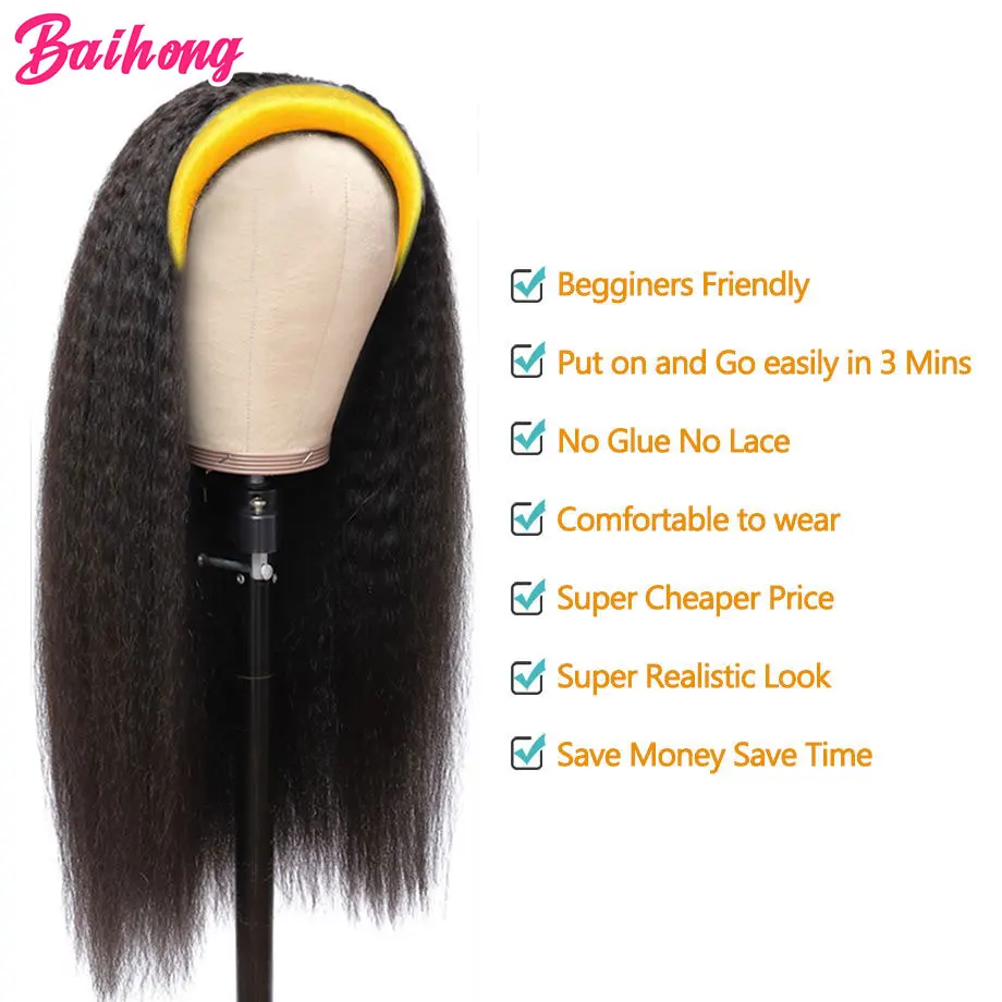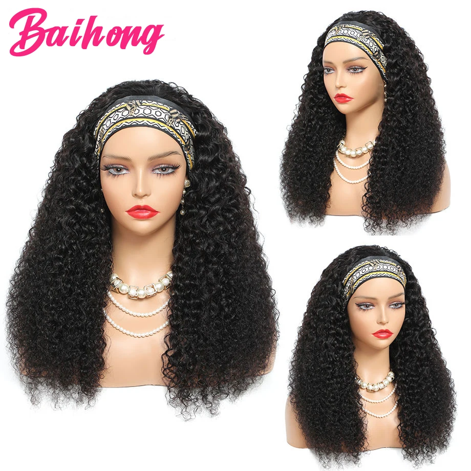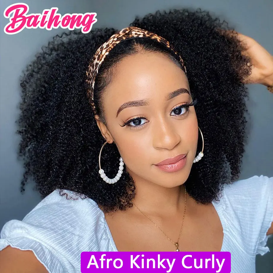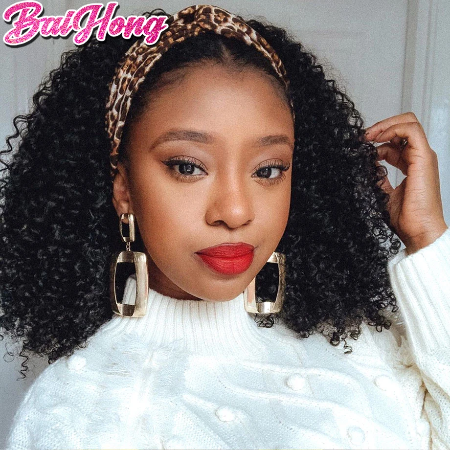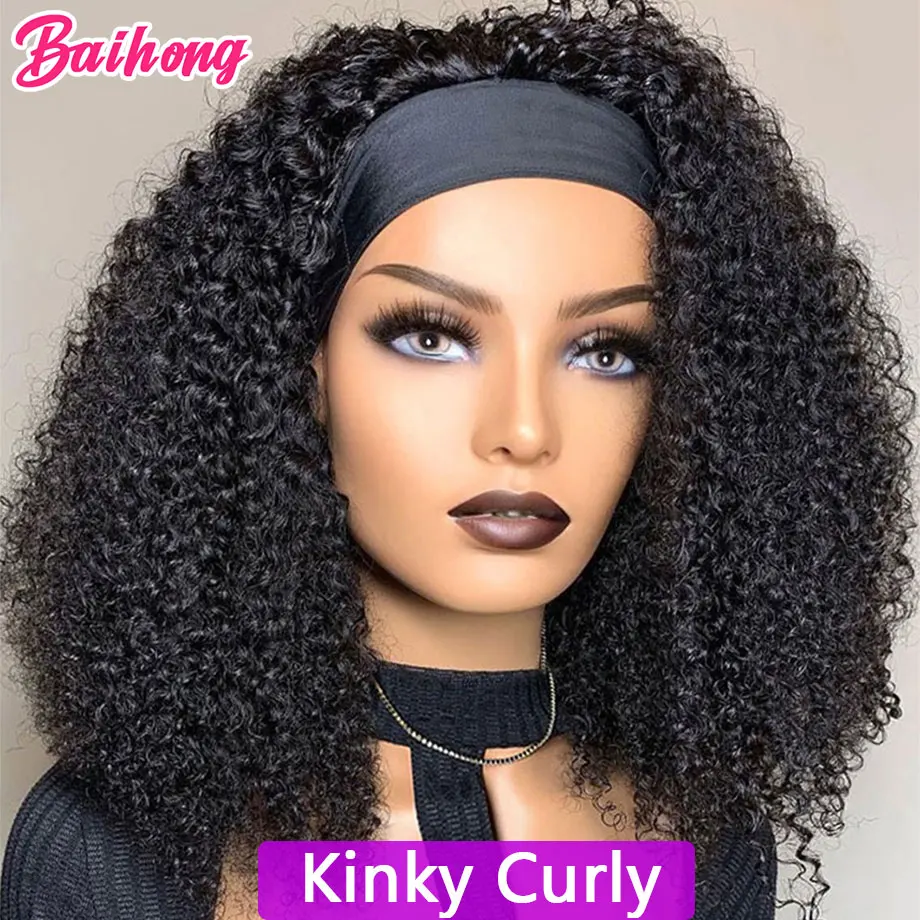 Wigs StyleKinky Curly Headband Human Hair Wig