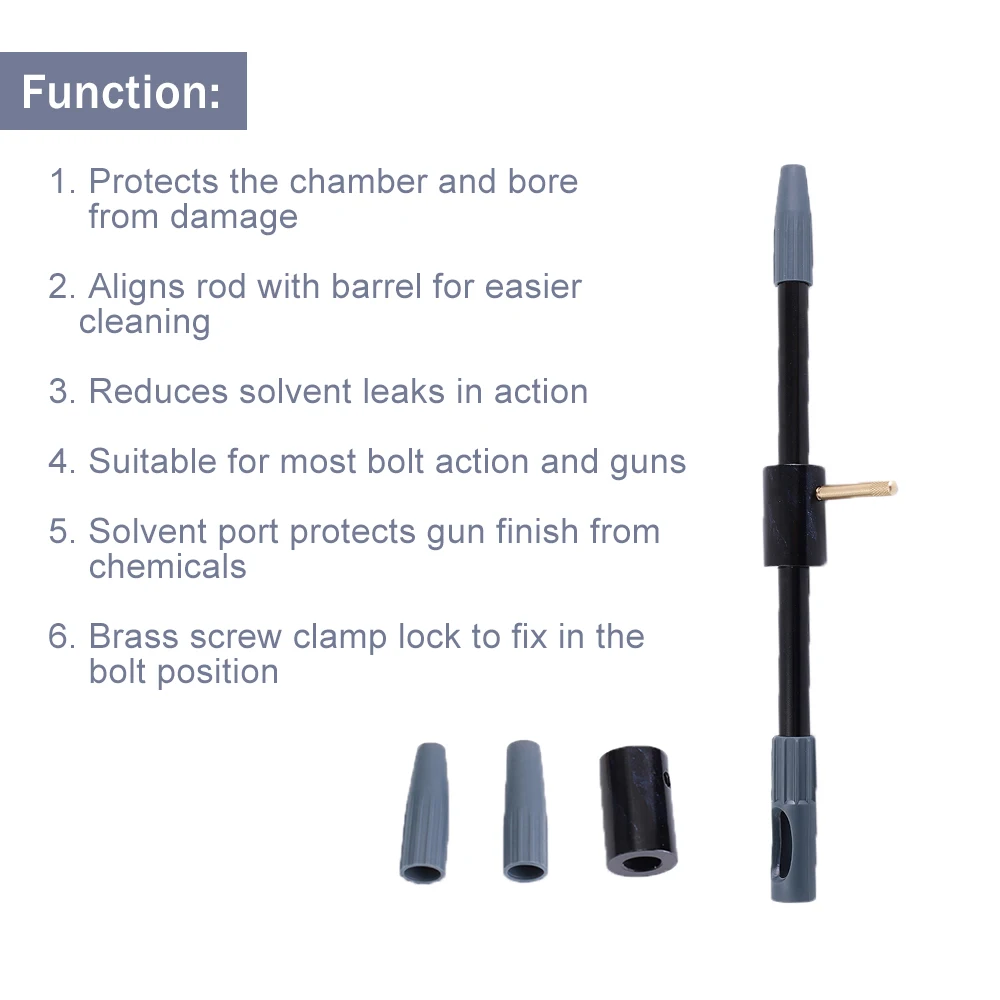 Универсальная направляющая отверстия обеспечивает более легкую и безопасную очистку, помогая в выравнивании вашего чистящего стержня с бочкой вашего пожарного устройства. Правильное выравнивание стержня предотвращает поломку и изгиб, которые могут повредить ваше отверстие. Встроенный сольвентный порт уменьшает вероятность проливания и расточения растворителя, что может разрушить отделку вашего оружия. Эта универсальная направляющая включает в себя ошейник, предназначенный для винтовок в стиле MSR/AR, который создает более плотное прилегание и дополнительную поддержку верхнего приемника во время чистки вашего оружия.