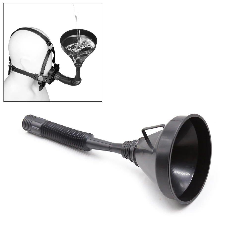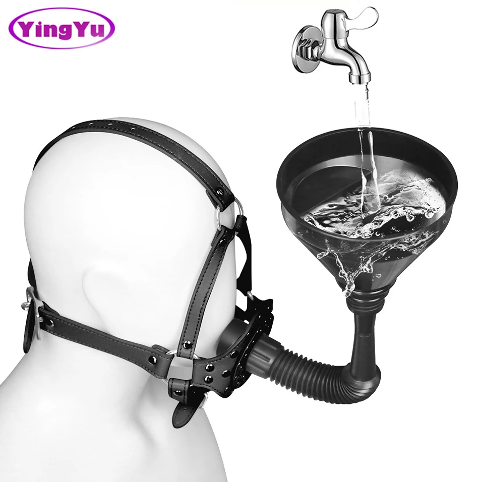 БДСМ Туалет Воронка открытый рот кляп маска капюшон из искусственной кожи Воронка полости рта клизма слюни Plug кляп голова жгут бондаж взрослые игры