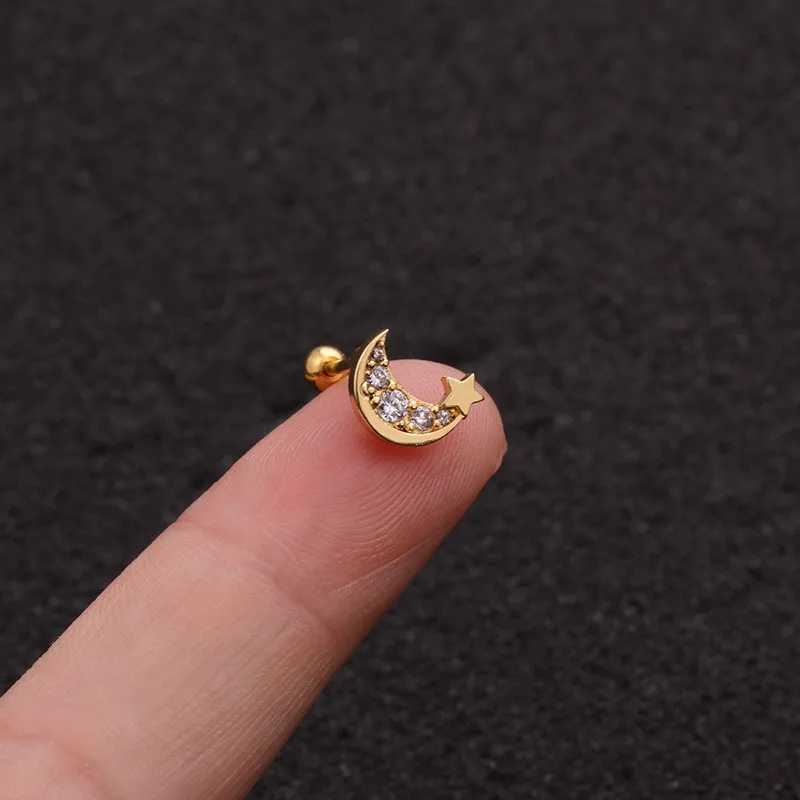 1 шт Диаметр 0,8 мм Пирсинг, серьги со шпилькой, для женщин, 2021 трендовые ювелирные изделия Луна эльфы броши в виде ящерицы инкрустированные циркон мини-серьга оптом