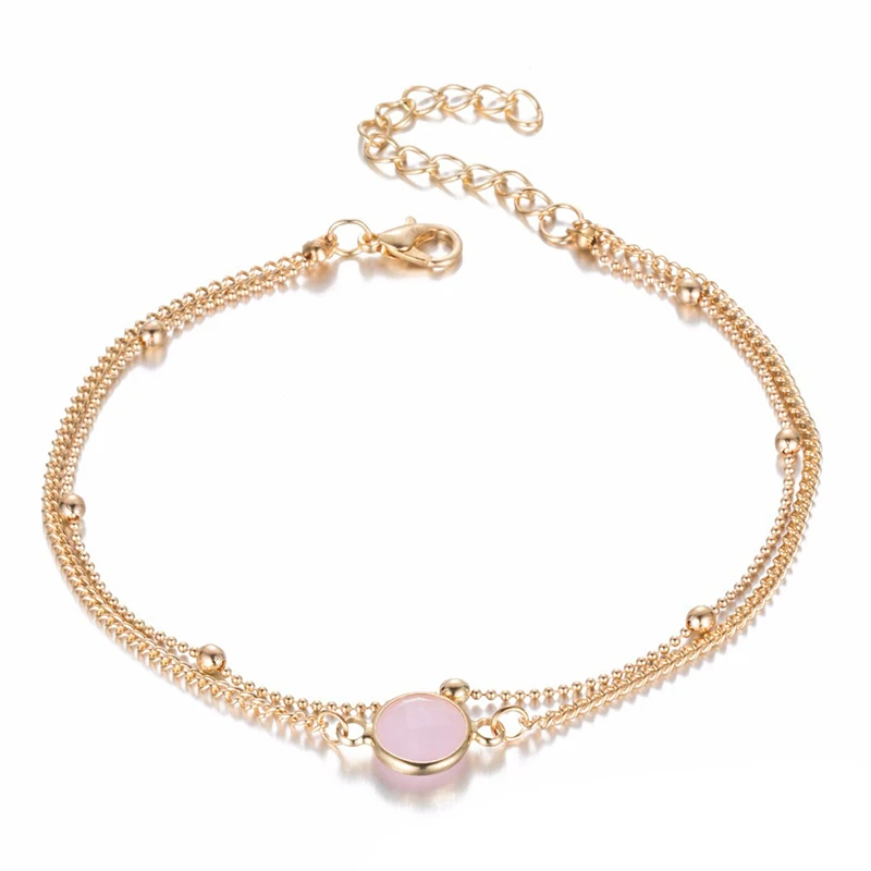 Браслет на щиколотку Женский, двухслойный анклет в богемном стиле с опаловым кристаллом, модные пляжные украшения до щиколотки, летняя бижутерия