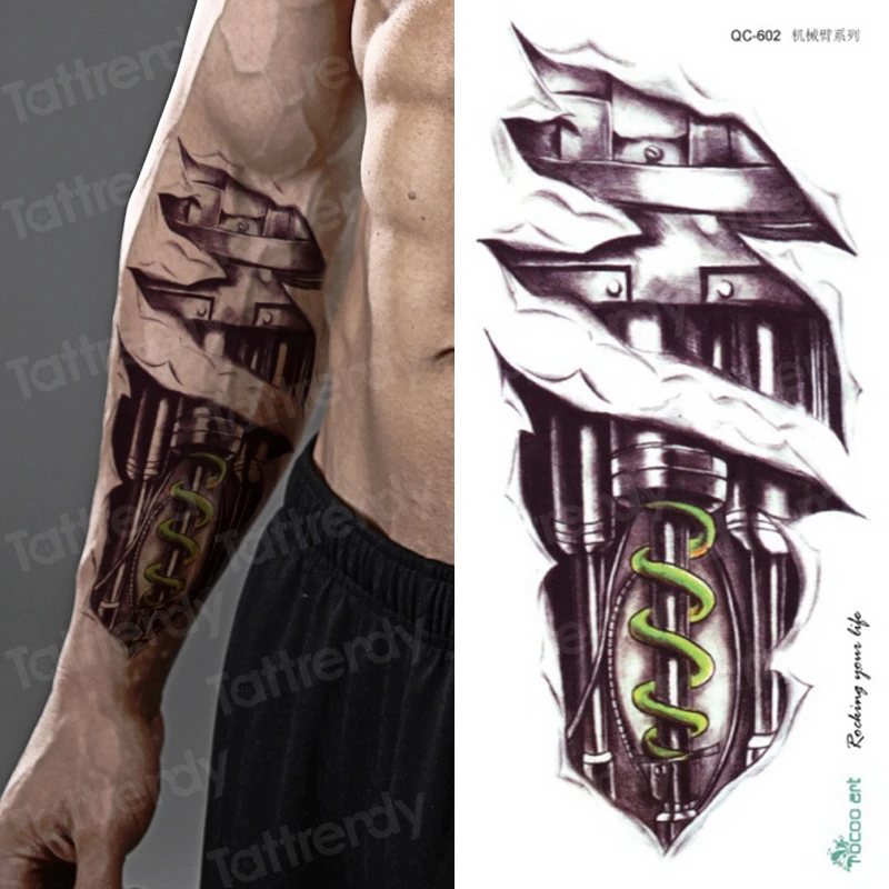 Татуировка Временная Механическая Временные татуировки для мужчин и женщин, татуировка Временная водостойкая 3d-робот-тату, переводная водная наклейка для боди-арта