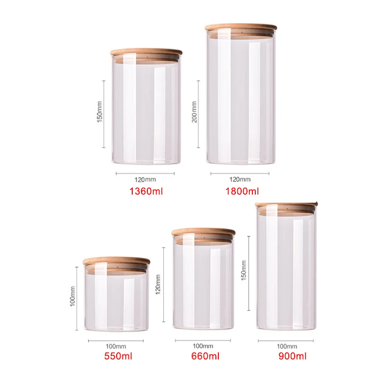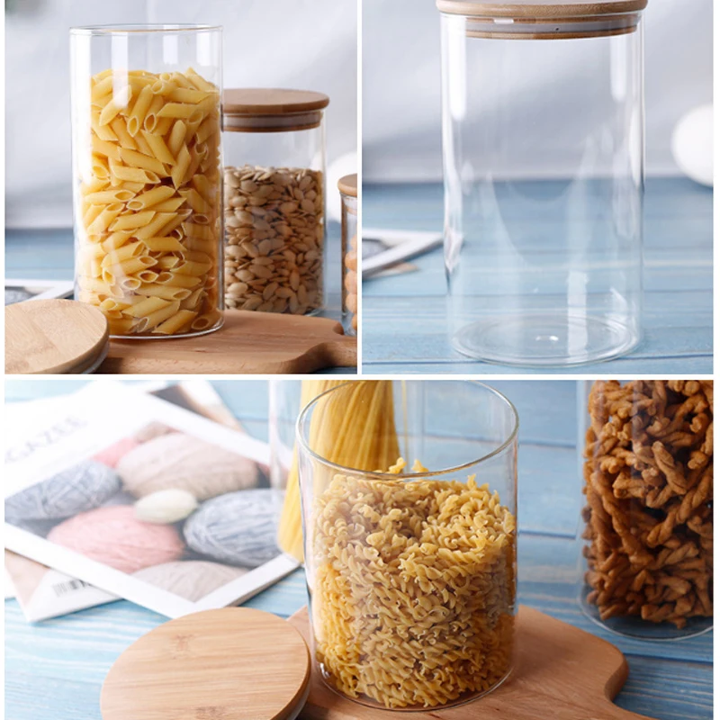 Бамбуковый пищевой контейнер, Герметичный пищевой стеклянный резервуар, кухонные разные коробки для хранения зерна