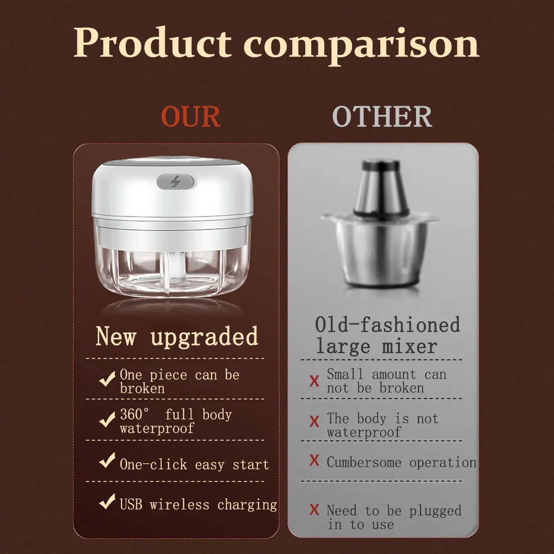 Особенность: 1. Электрическая дробилка: она позволяет вам попрощаться с удобным вытягиванием, и она может автоматически раздавить, нажав на верхнюю кнопку. 2. Прочный и долговечный: лезвие из нержавеющей стали прочное и долговечное, а эффективность резки высокая; Пищевой пластик в чашке не содержит BPA, может безопасно содержать пищу, является сильным и не содержит бактерий. 3. Быстро измельчите: острый Чеснок Лезвие измельчителя может быстро Измельчить чеснок, приправы, орехи, овощи, мясо, лед и т. Д. Очень подходит для небольших продуктов питания 4. Легко чистить: просто вручную Положите еду или ингредиенты в мини-кухонный комбайн, закройте крышку и начните с кнопки, чтобы быстро измельчить. Миску и лезвие можно разделить для легкой очистки.